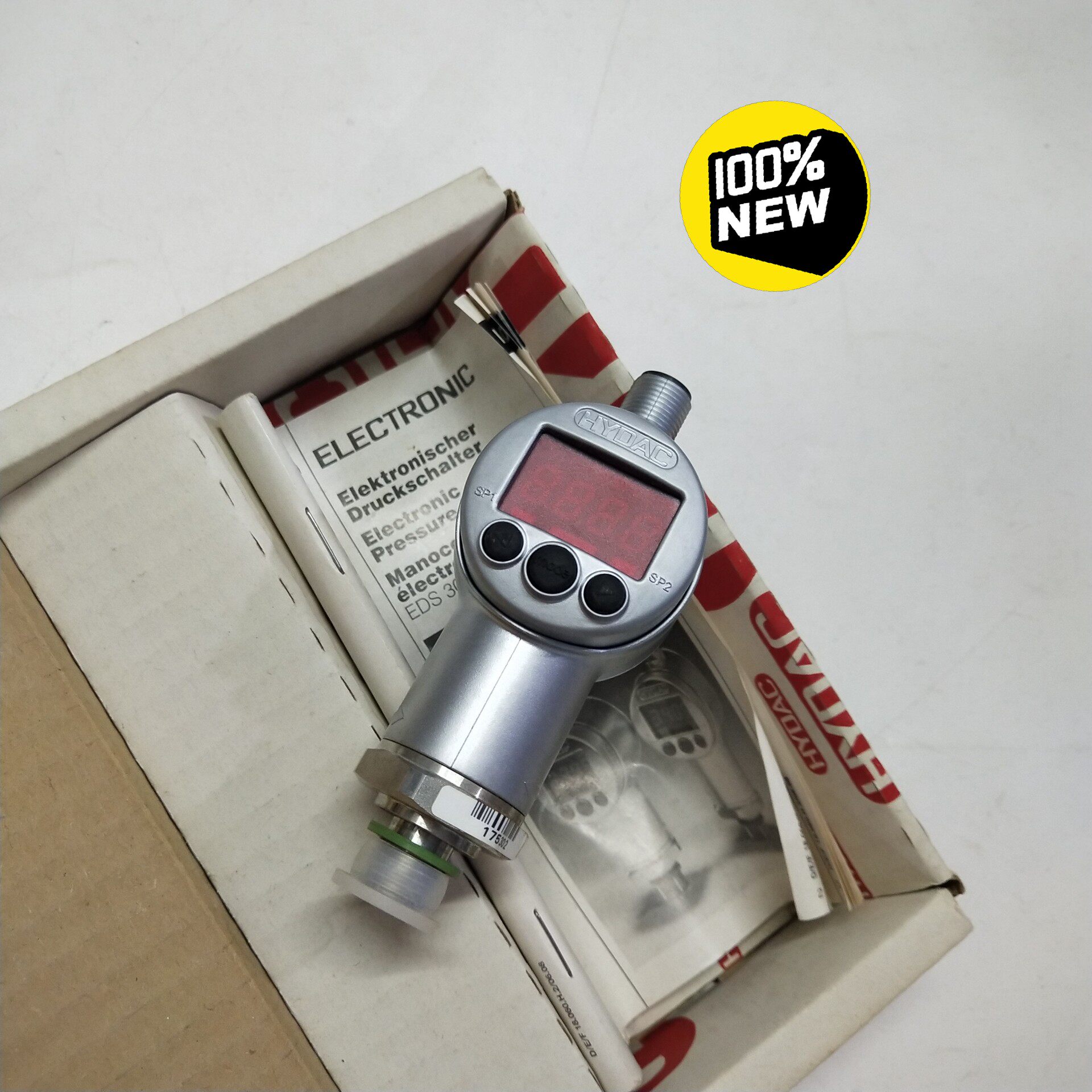 HYDAC EDS 3346-2-06,0-000-F1压力传感器为全新原装正品,采用高精度压力检测技术,德国制造,确保稳定可靠的性能。产品外壳为银色金属材质,结构紧凑,顶部配备标准螺纹接口,便于安装连接,底部设有连接器,方便电气信号传输。