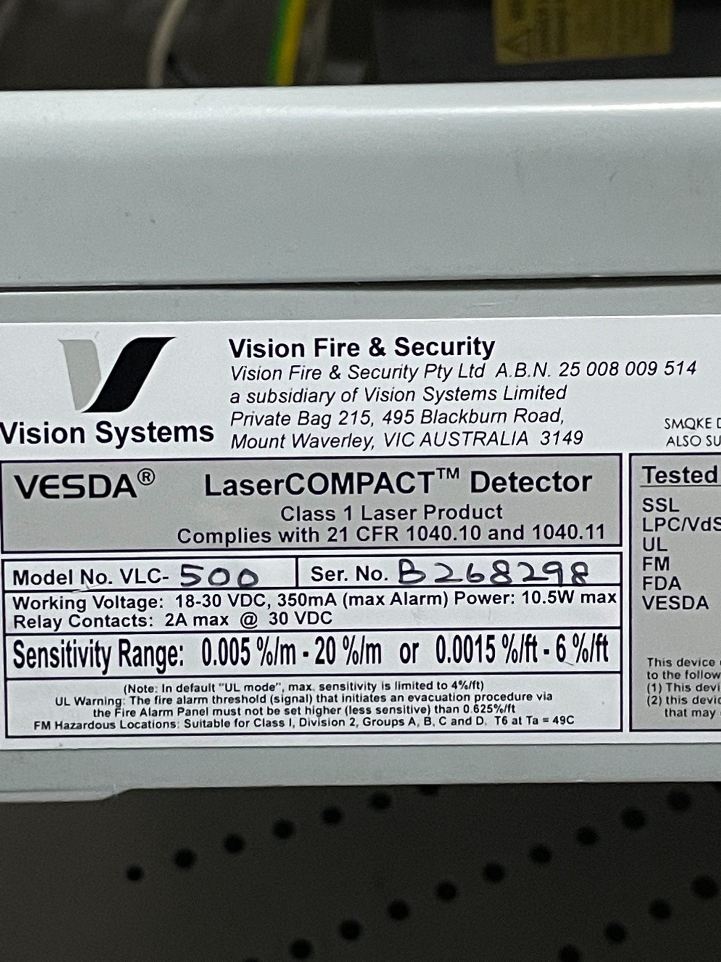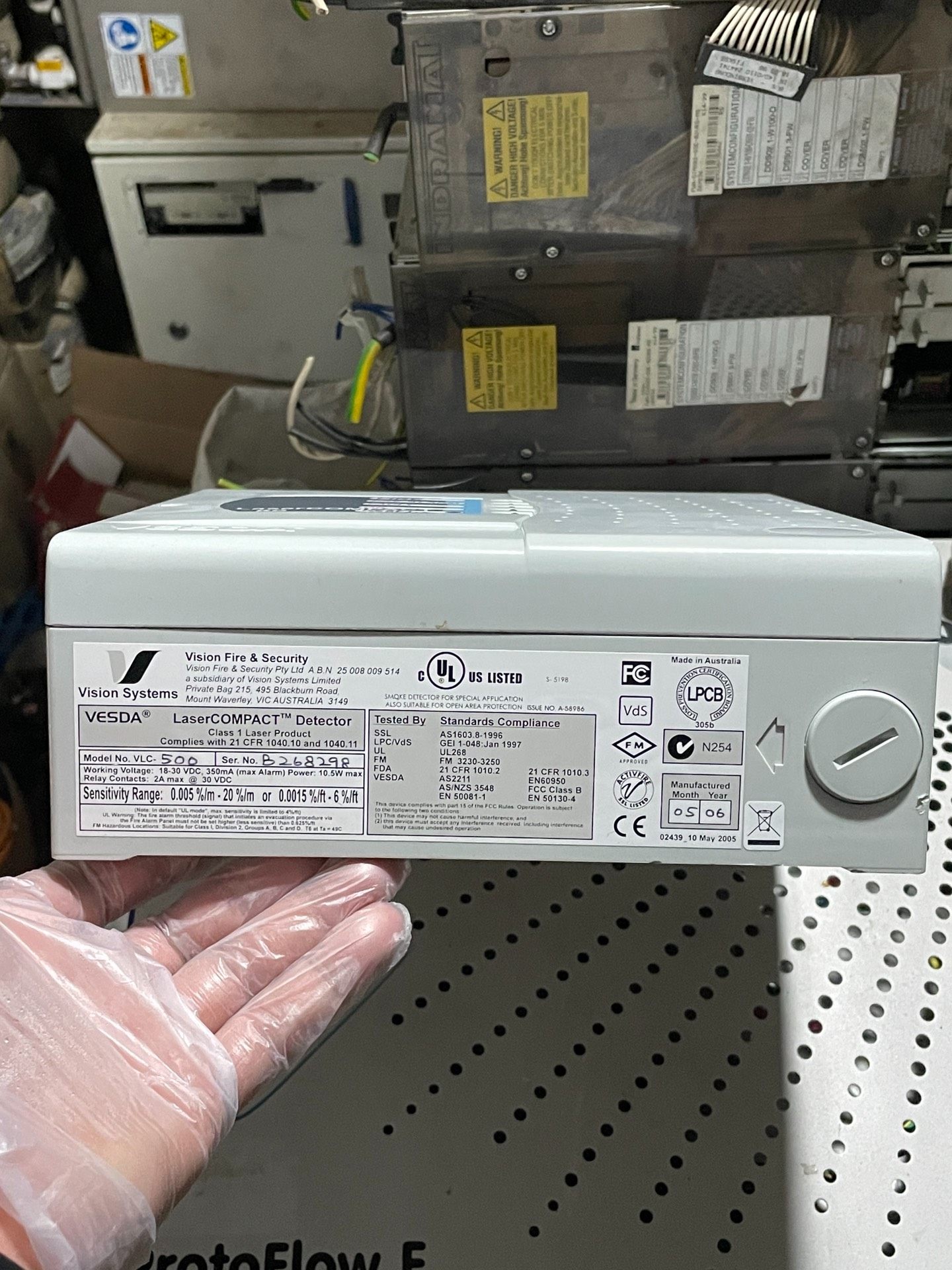 该设备为库存未使用产品,但由于存放时间较长,螺丝孔处塑料存在老化现象,部分区域有裂缝(具体以实物为准)。尽管外观存在轻微瑕疵,核心探测功能未受影响,仍可正常用于相关安全防护系统。