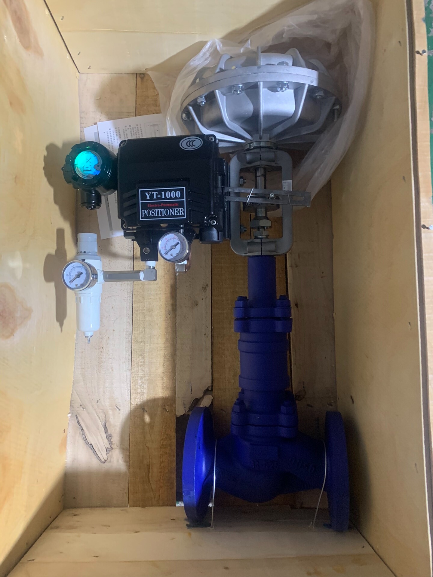 ARI YT-1000气动两通控制阀是一款用于工业流体系统的精密控制设备,结合气动驱动与电气定位技术,实现对管道介质流量的精准调节。产品整体采用蓝色法兰式结构,安装便捷,适用于多种工业场景。