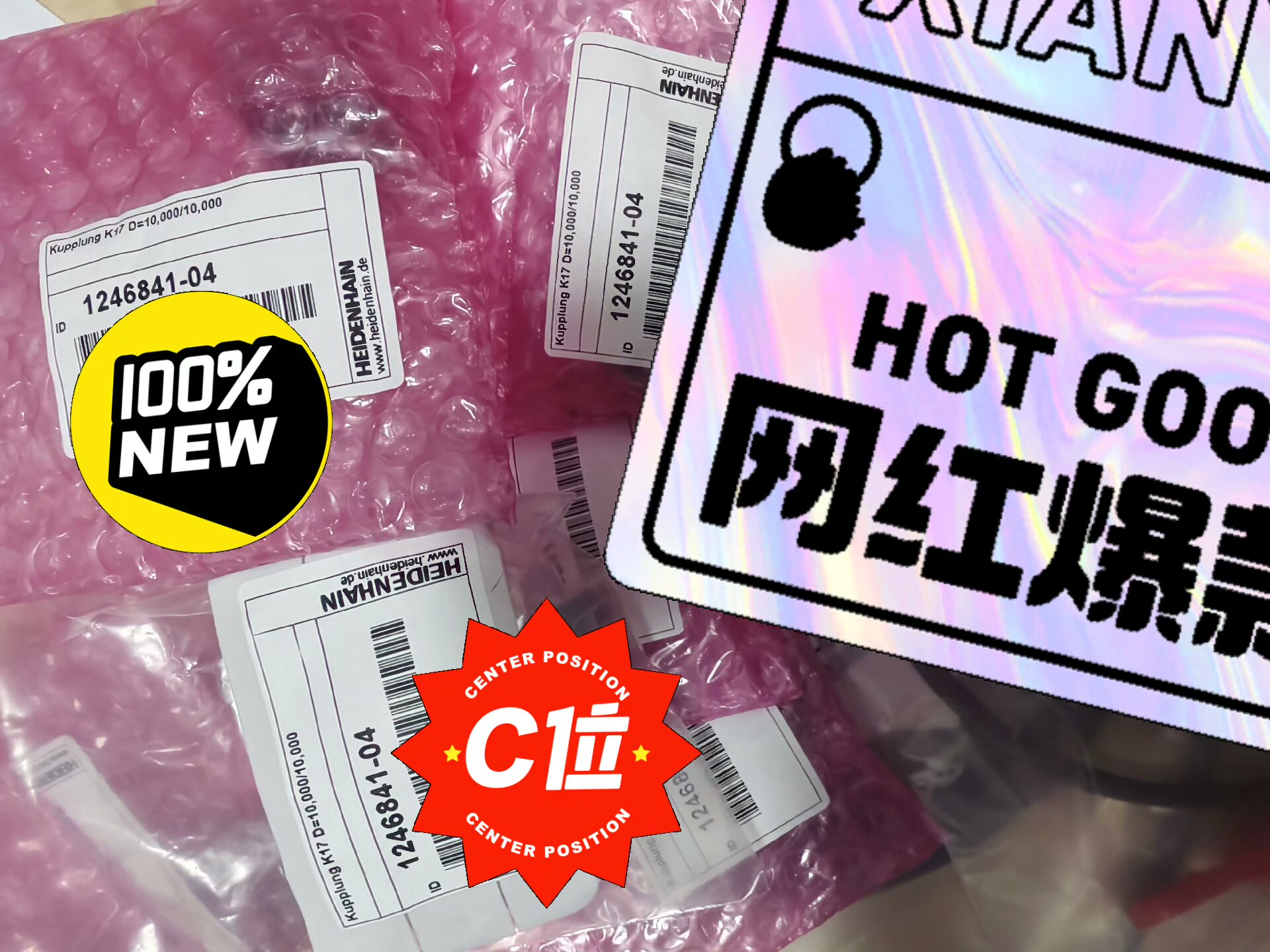 产品为现货供应,采用粉色气泡袋独立包装,确保产品完好。包装标签印有品牌标识及产品编号,便于库存管理和产品识别。
