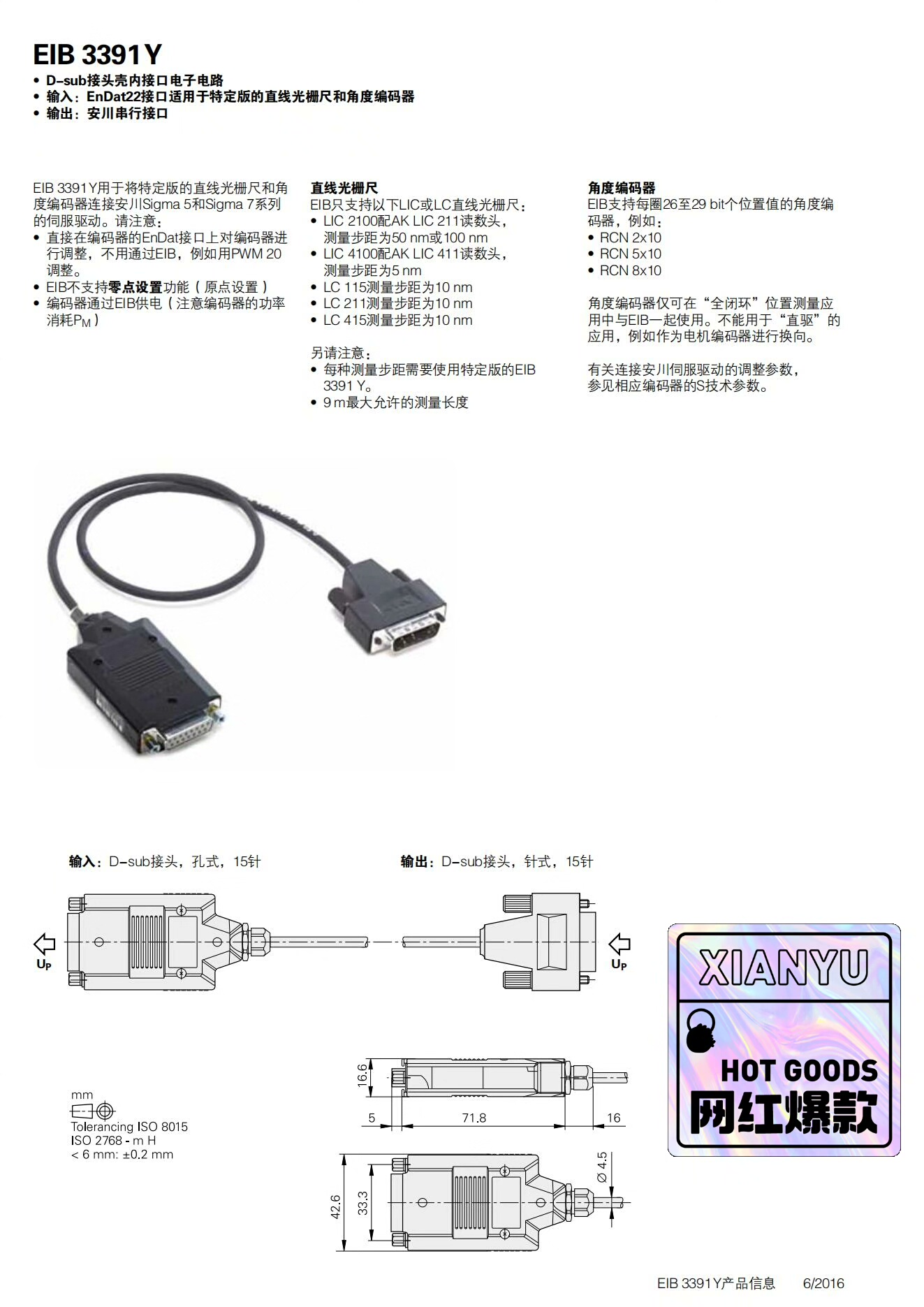 - 接口协议:支持EnDat22接口,兼容YASKAWA等主流控制系统,信号传输稳定。