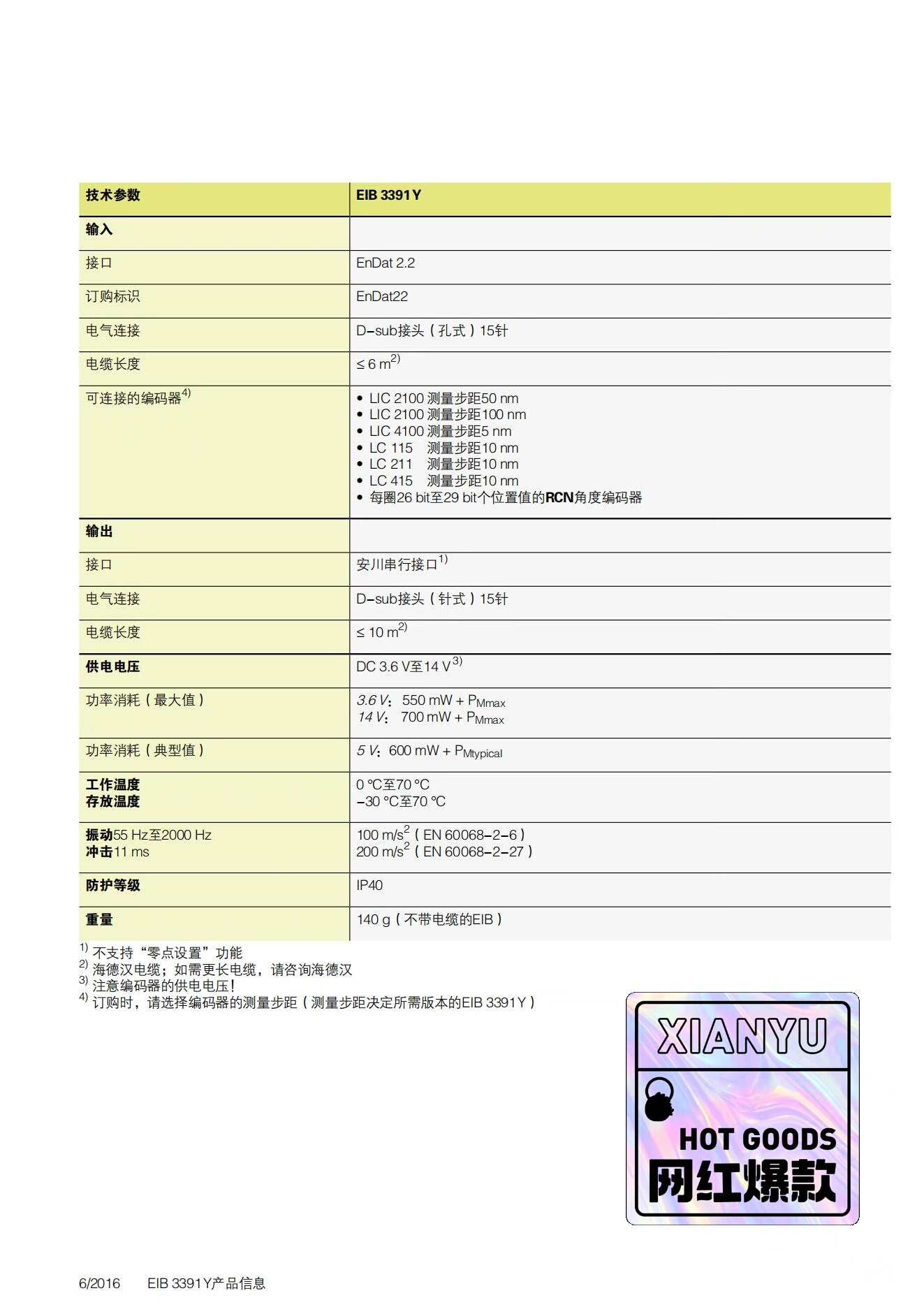 - 品牌保障:德国海德汉(HEIDENHAIN)原厂生产,品质可靠,符合国际工业标准。
