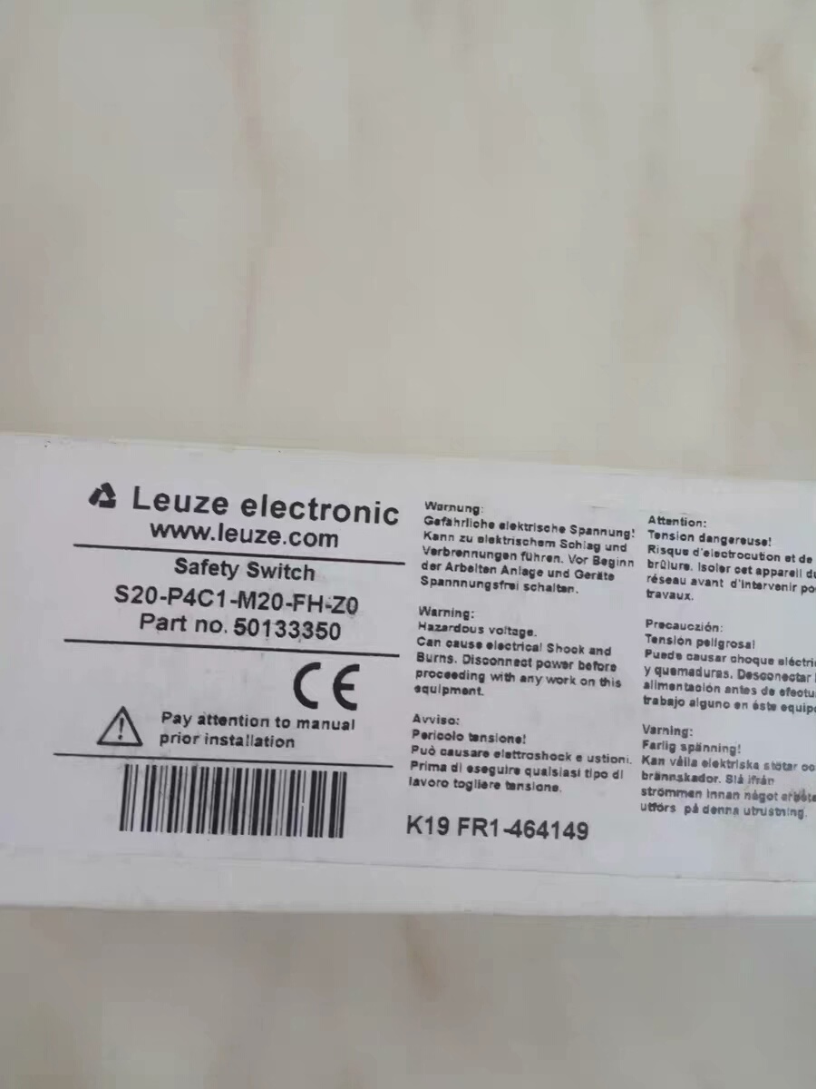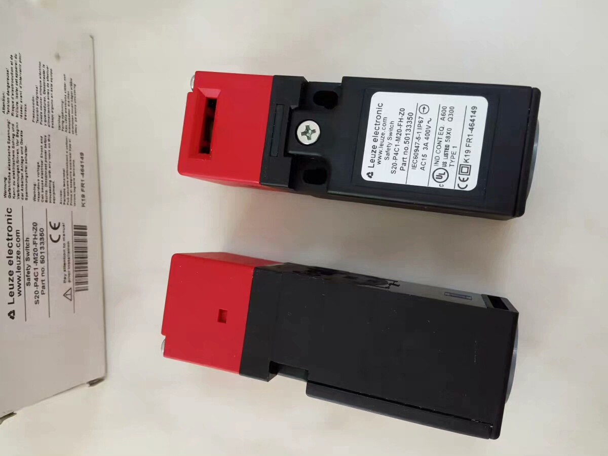 Leuze劳易测S20-P4C1-M20-FH-Z0安全门锁开关(零件号50133350)是一款专为工业设备安全防护设计的关键组件,旨在通过监测机器防护门或安全围栏的开闭状态,确保设备在操作过程中的人员安全。产品采用红黑相间的耐用外壳,结构紧凑,安装便捷,适用于各类自动化生产线、机床、包装机械等工业场景。