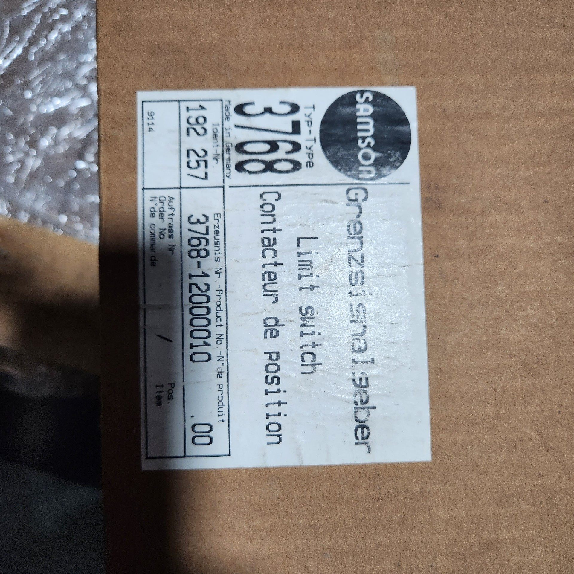 本产品为SAMSON品牌的限位开关,型号为E16MAA1.001,专为工业设备的位置指示设计,是工业自动化系统中重要的控制元件。产品采用纸箱包装,作为两年期运行备件提供,确保工业生产过程中的稳定运行。