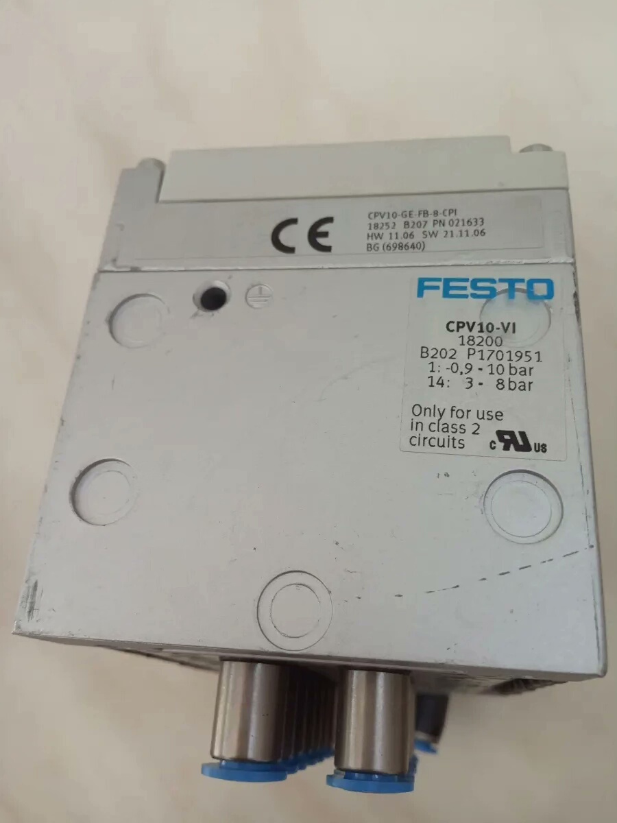 本产品为FESTO费斯托旗下CPV10系列岛阀电磁阀组件,包含CPV10-VI八位阀体(型号18200)和CPV10-GE-FB-8-CPI八位总线控制板(型号18252),适用于自动化生产线及气动控制系统的集中控制与信号集成。