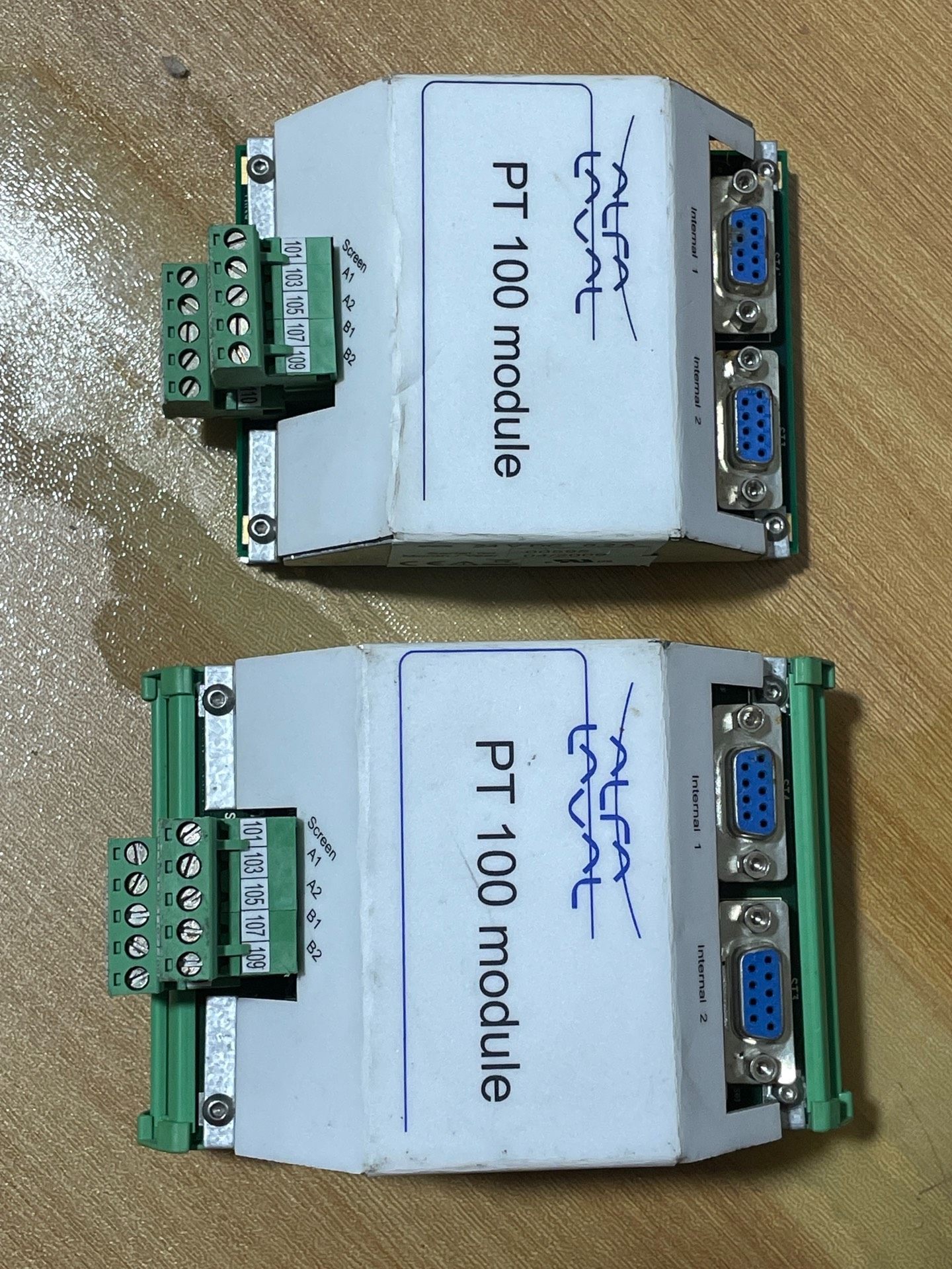 - 接口配置:顶部配备两个DB9接口(Internal 1和Internal 2),用于模块内部连接或与上位机通信;底部设有绿色端子排,包含101,103,105,107,109等标识及A1,A2,B1,B2,Screen接口,方便外部传感器及线路的接入。