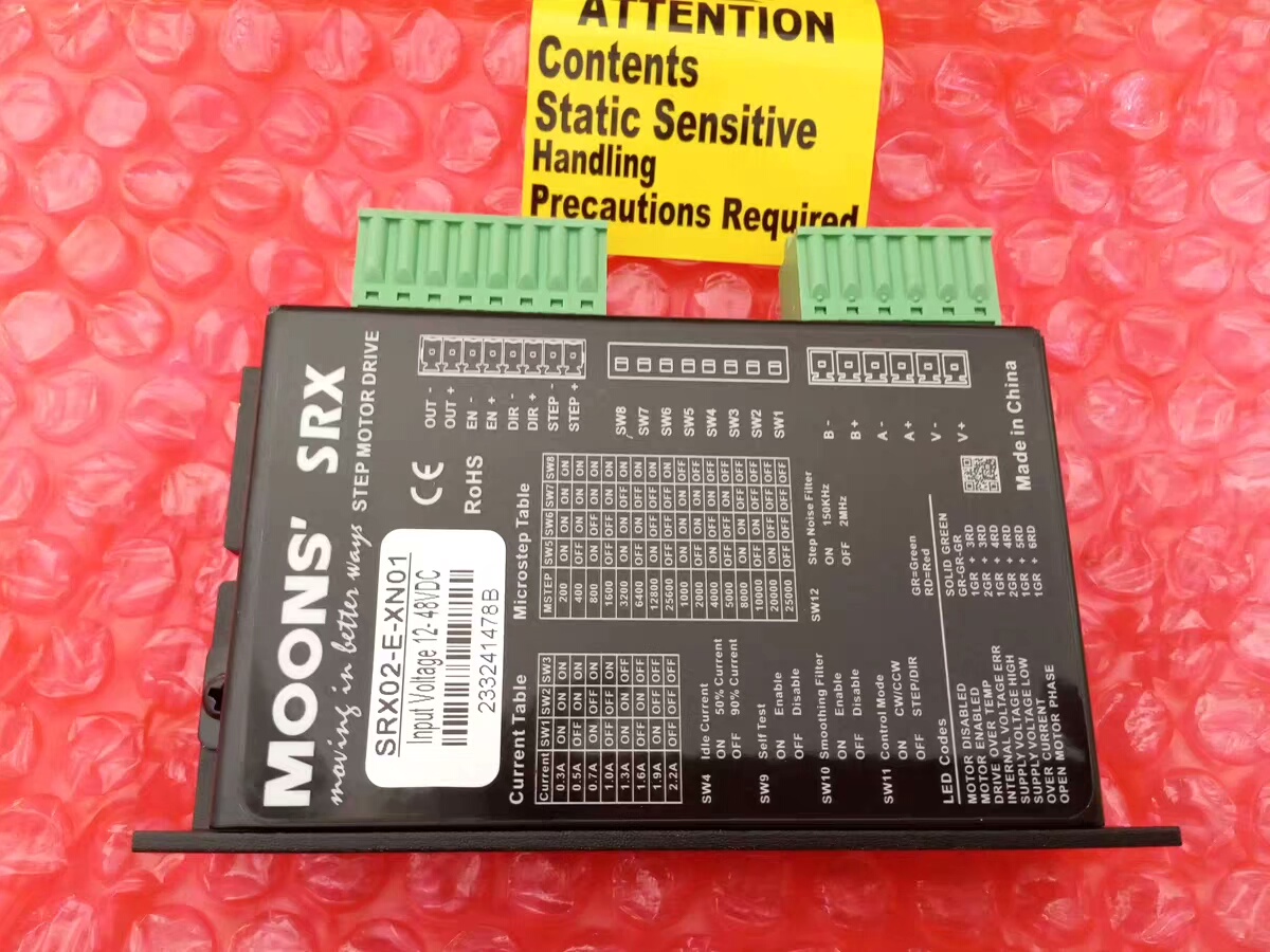 MOONS' SRX02-E-XN01 步进驱动器是一款高性能的步进电机驱动设备,专为自动化控制领域设计,具备稳定可靠的驱动能力,适用于各类需要精密运动控制的场景。产品符合CE和RoHS认证标准,确保在工业环境中的安全与环保要求。
