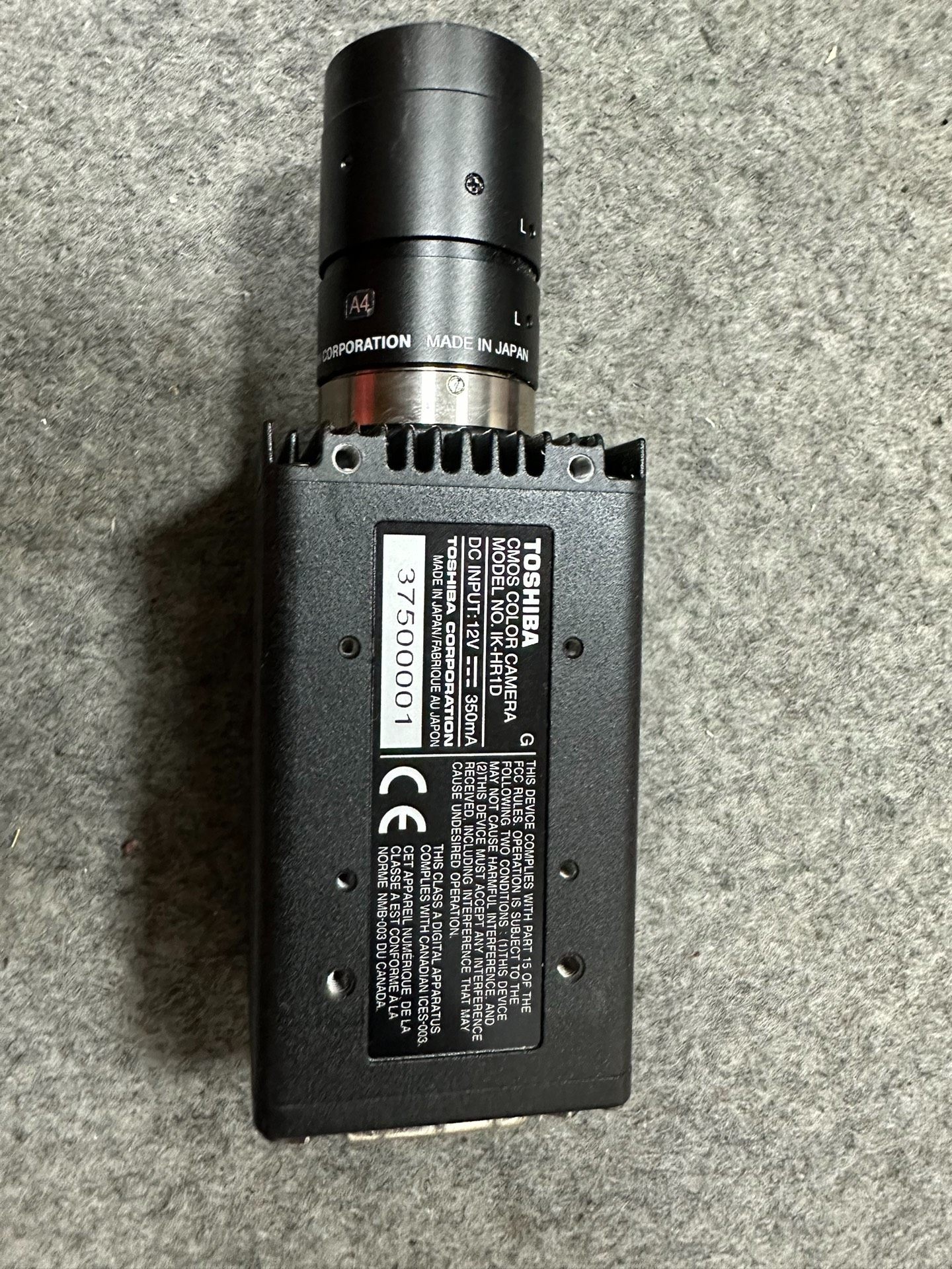 本产品为东芝(TOSHIBA)旗下型号为IK.HR1D的工业相机,具备高分辨率成像能力,适用于各类工业视觉检测与自动化场景。设备整体呈黑色方形结构,顶部搭载可调节镜头,机身标注“MADE IN JAPAN”,确保产品品质与稳定性。