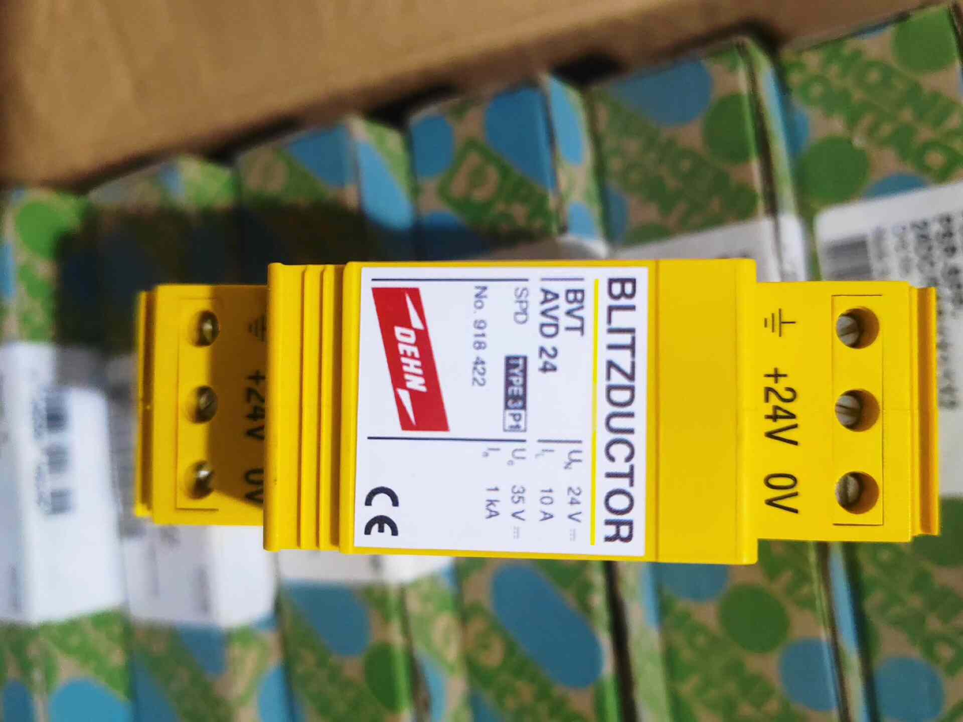 DEHN 918422 防雷器是一款由德国DEHN公司生产的专业电涌保护设备,型号为BLITZDUKTOR VT BVT AVD 24,物料编号66055,具备CE和EAC认证,确保产品符合国际安全标准。
