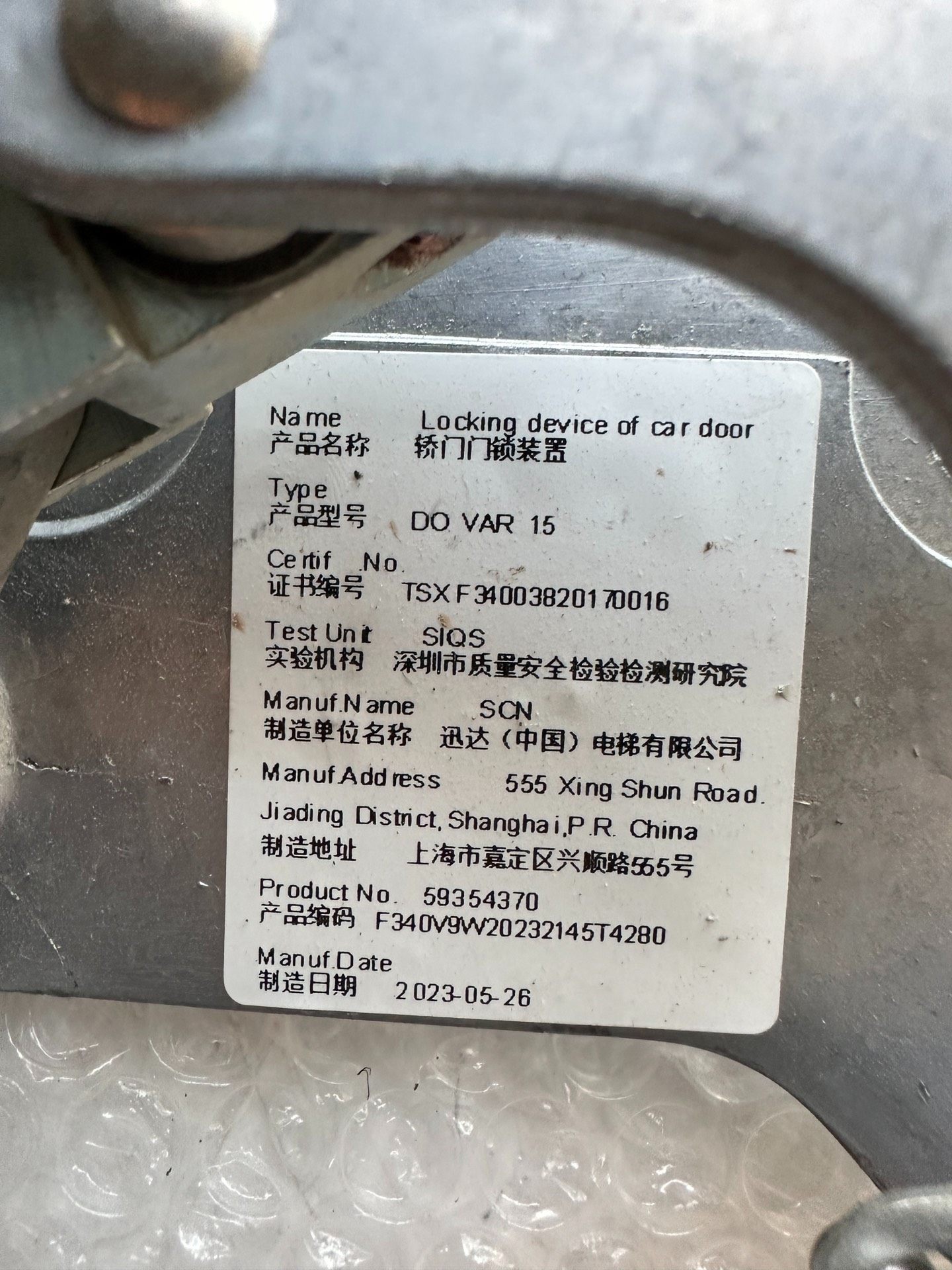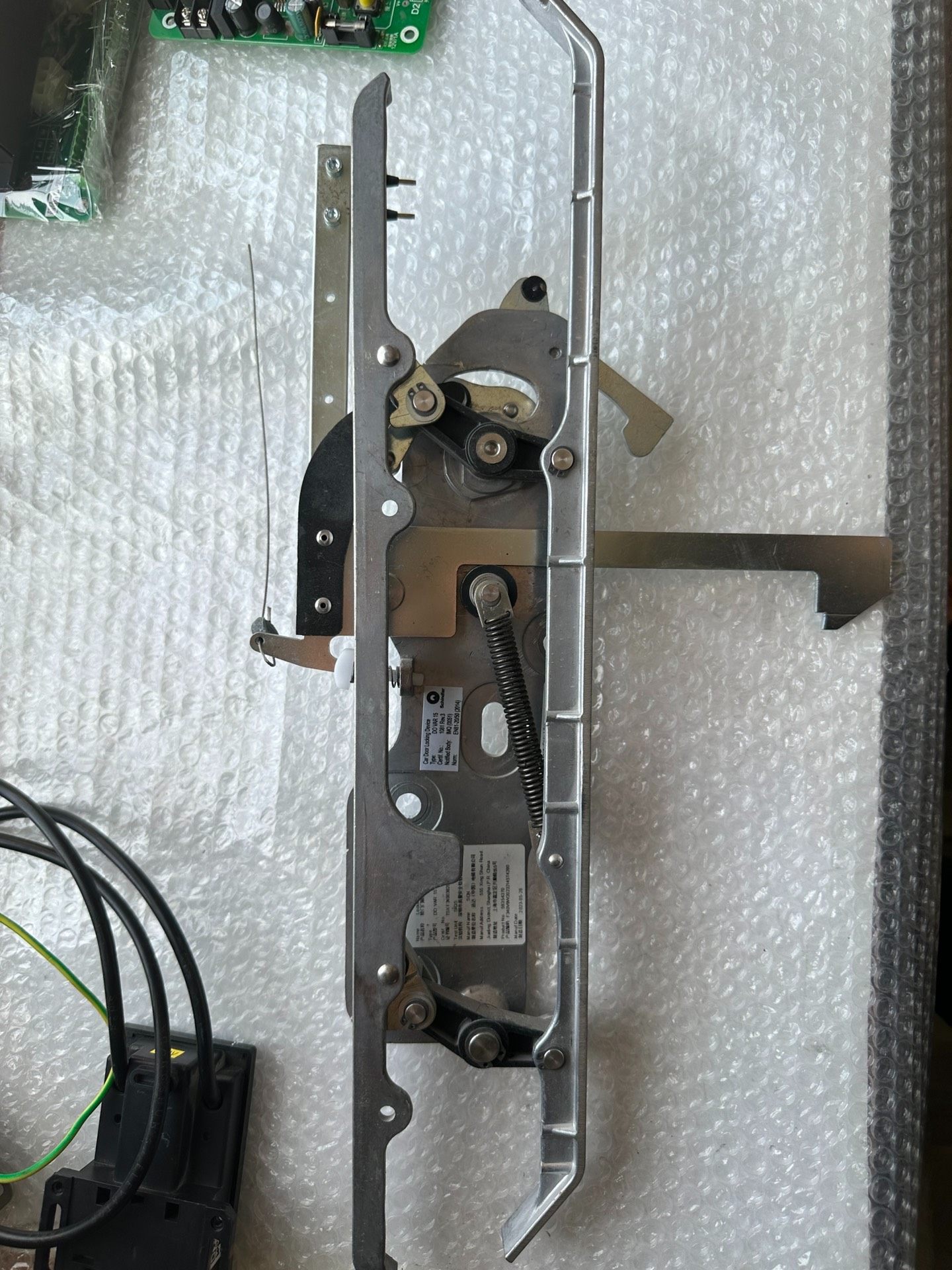 本产品为迅达电梯V15系列门刀,型号59354370,为二手拆机件。产品采用金属材质打造,结构稳固,包含弹簧、滚轮等关键部件,确保电梯门系统的稳定运行。成色如图所示,功能经检测完好,支持包上机使用,若出现不能用的情况可享受退换服务。