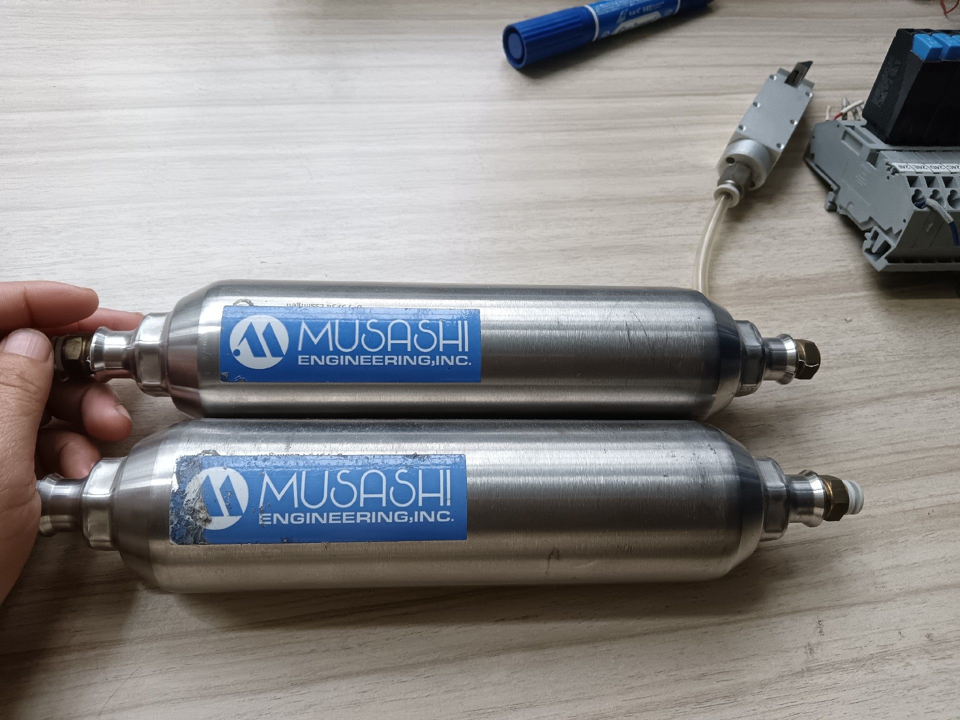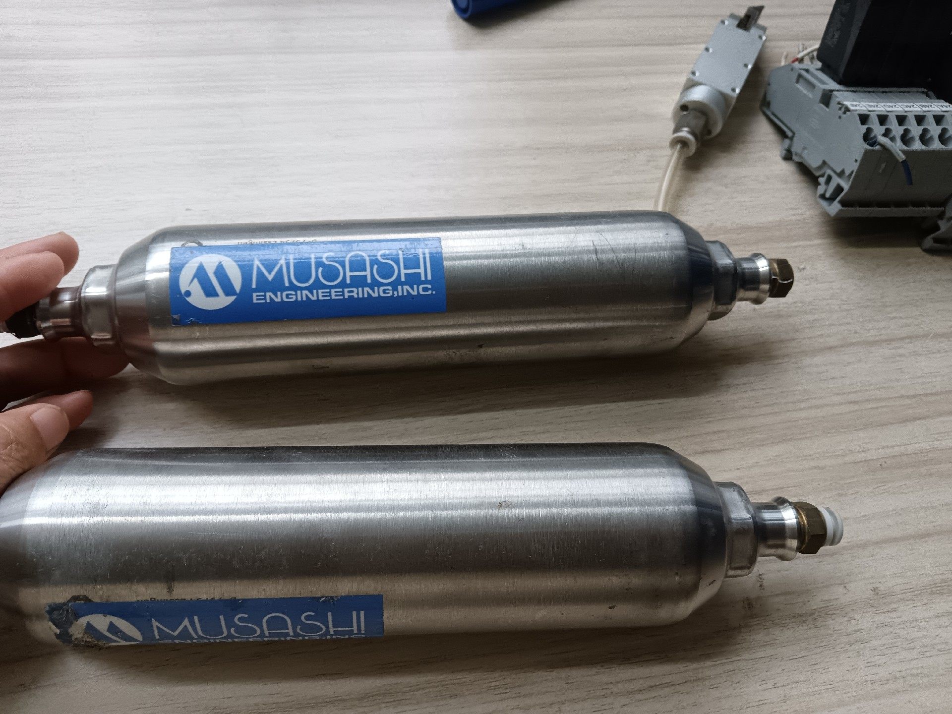 主要应用于MUSASHI武藏点胶机系统,作为气源缓冲和储存装置,广泛适用于电子制造、半导体封装、精密仪器组装等需要高精度点胶作业的场景,为点胶阀提供稳定的气源压力,保障点胶量的均匀性和准确性。