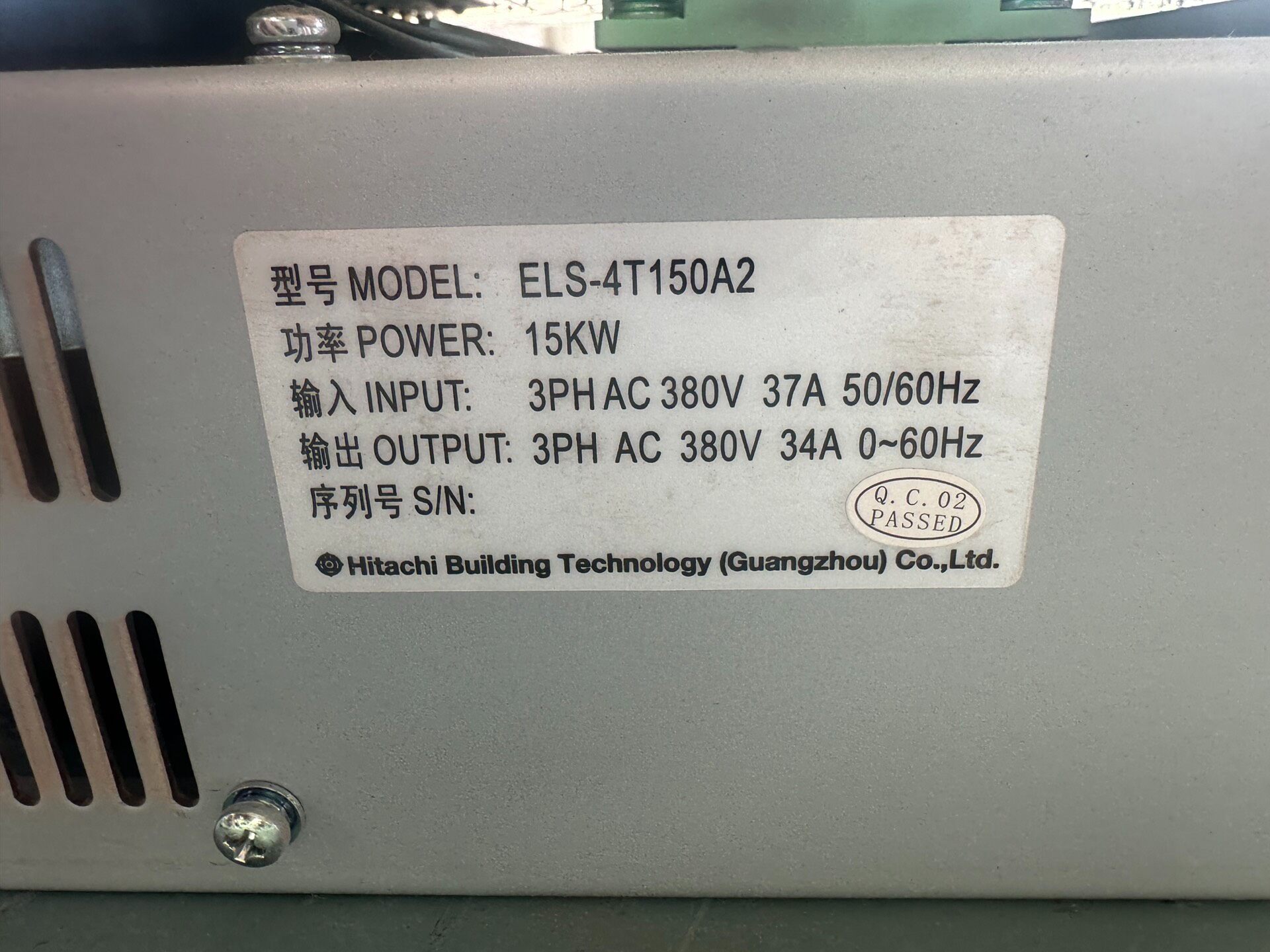 本产品为日立电梯LGE控制柜专用变频器,型号ELS-4T150A2,额定功率15kw,2019年生产,整体成色达95新,设备两侧无任何划痕,外观及性能均保持良好状态。