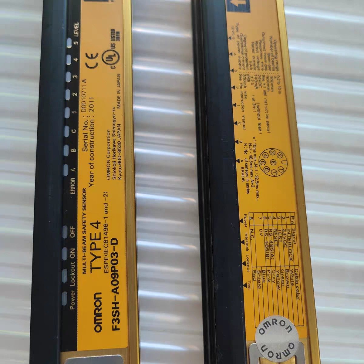 欧姆龙F3SH-A09P03-D安全光幕是一款高性能的多光束安全传感器,专为工业自动化场景中的人员与设备安全防护设计。产品采用黄黑配色的长条形结构,包含发射器与接收器两个部分,通过红外光束的遮挡检测,实现对危险区域的实时监控,有效防止人员进入危险区域造成伤害。