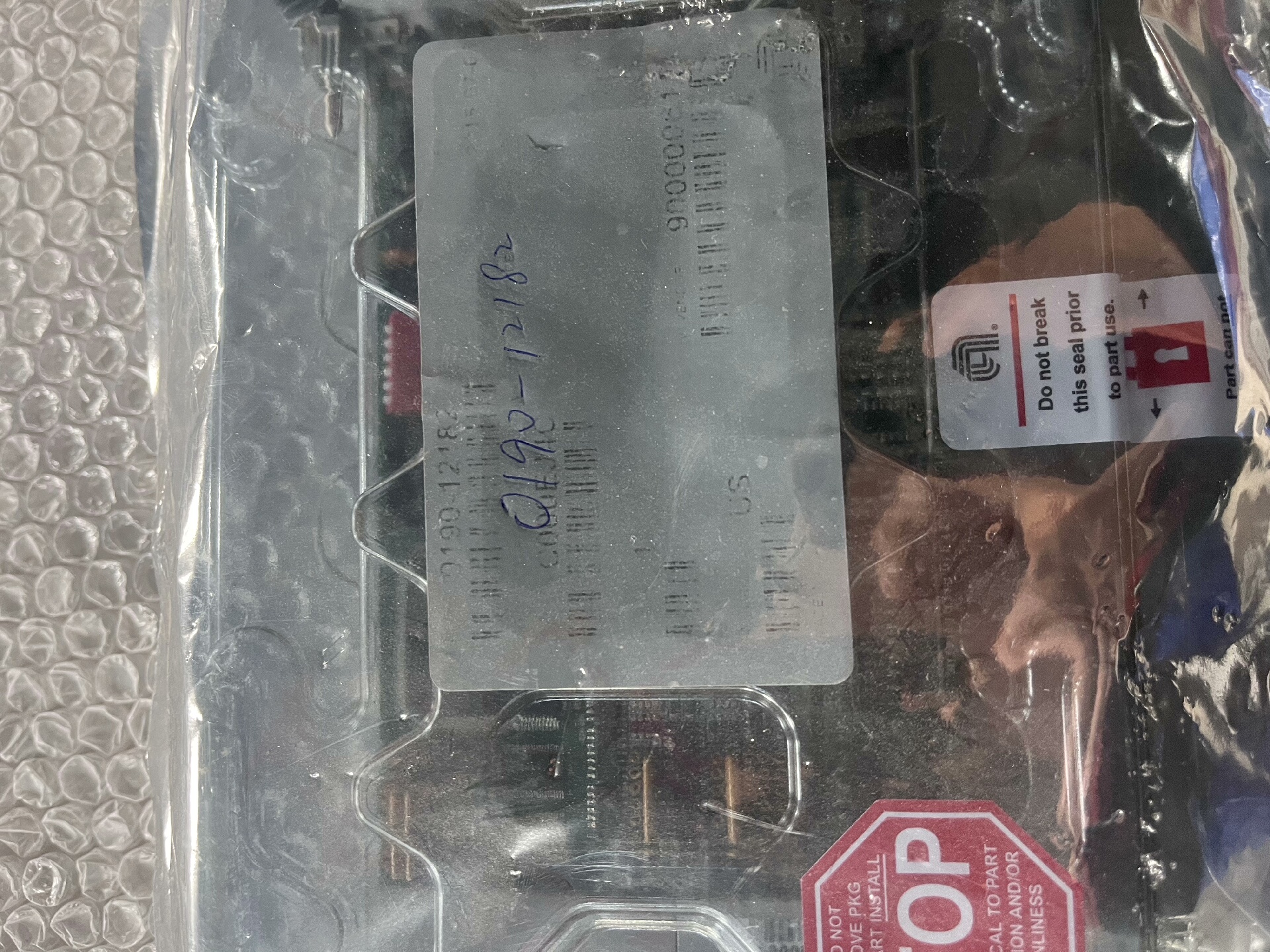 产品封装于防静电透明塑料托盘内,外包装贴有“STOP”警示标签及防静电处理说明,提醒用户在 handling 过程中注意防静电措施,避免因静电损坏板卡元件。
