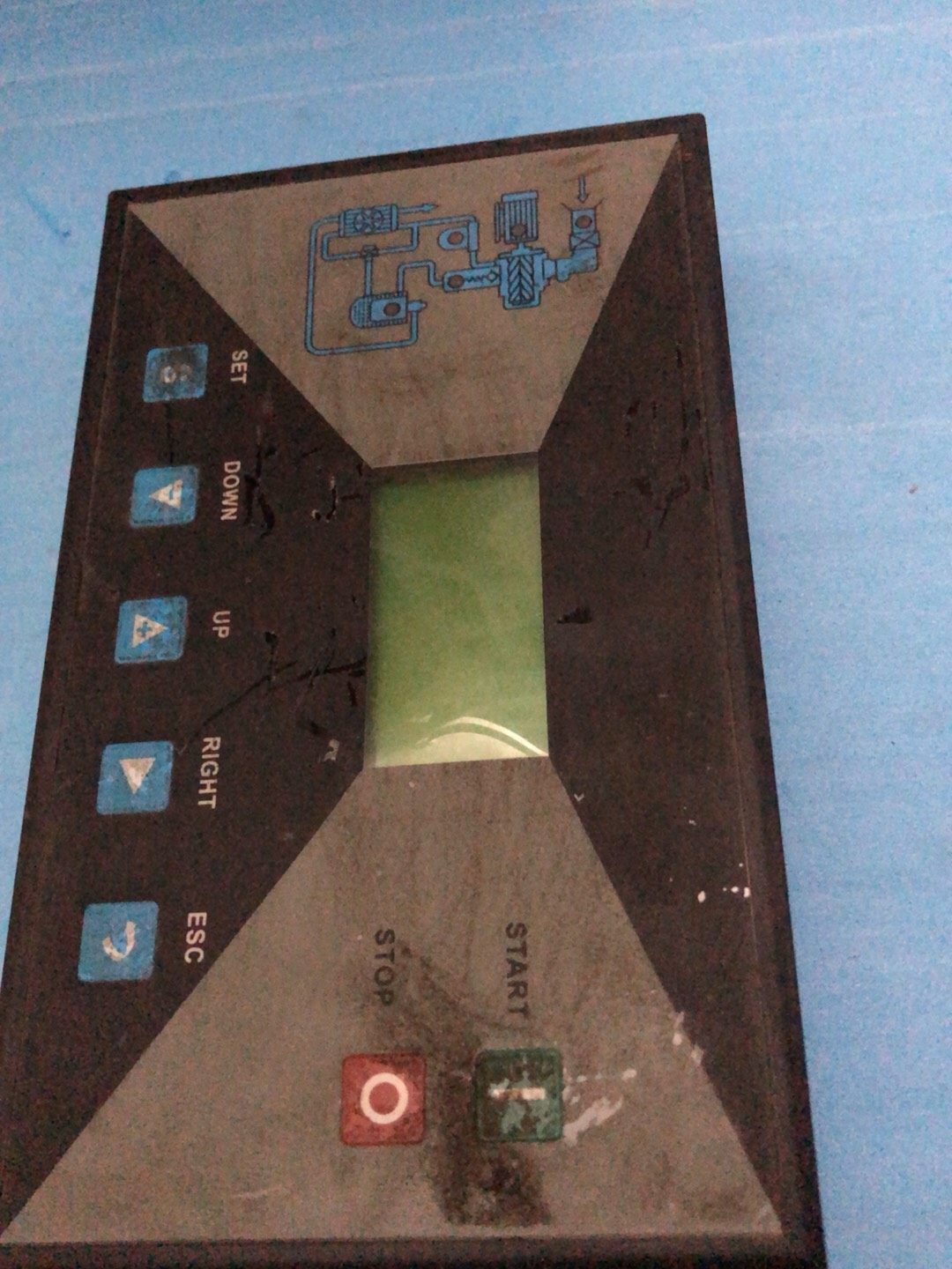 - 工业操作面板:带有START/STOP按钮及设备流程图示,支持快速启停控制和状态可视化。