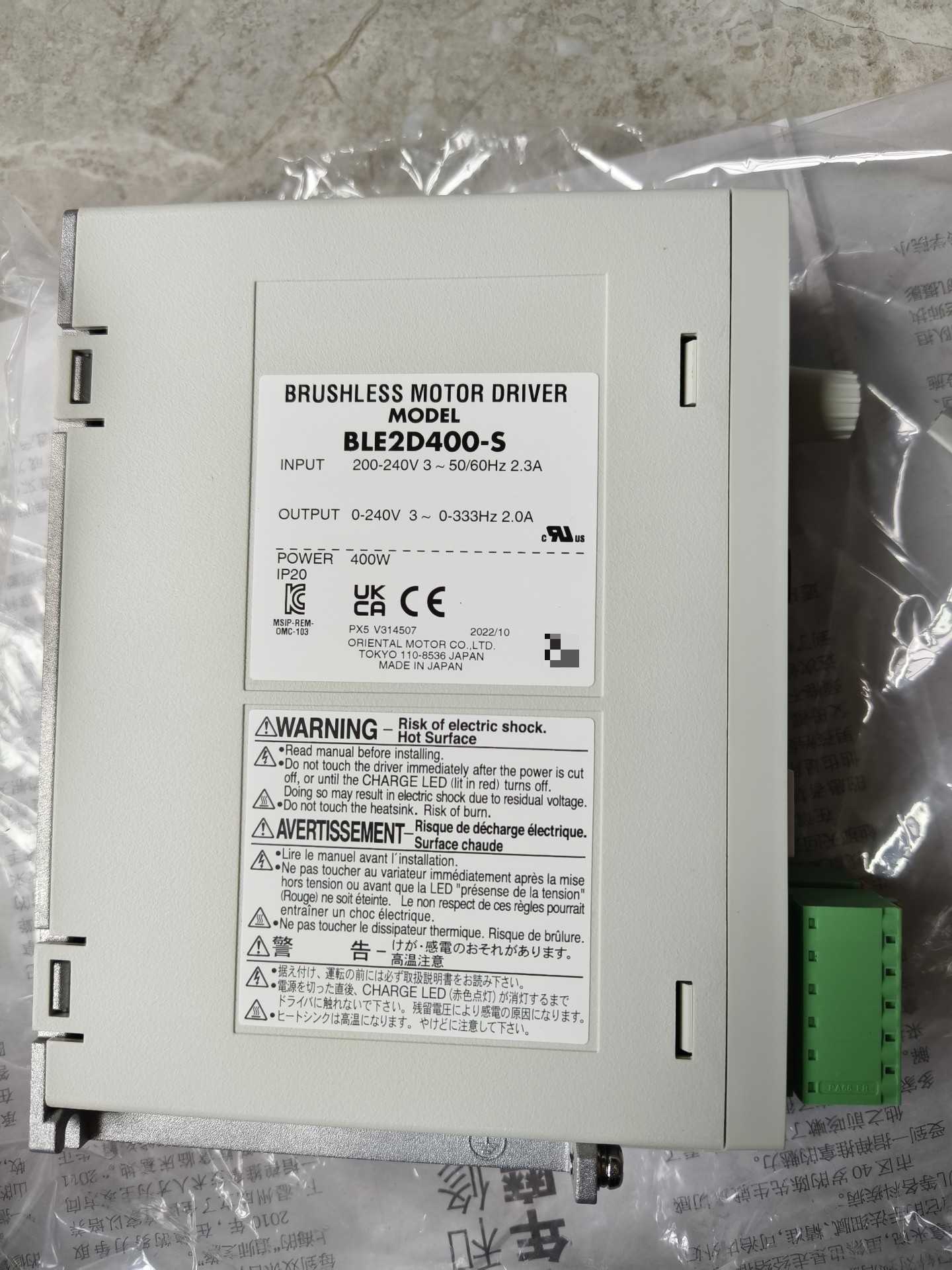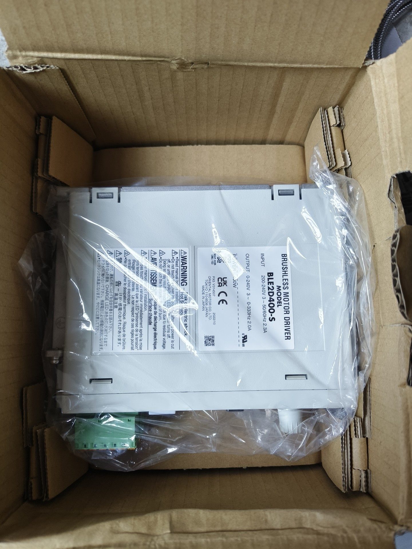 产品采用原厂纸箱包装,标签清晰标注型号 BLE2D400-S、生产日期(2022/12)及生产批号(PZX L037602),确保产品可追溯性。