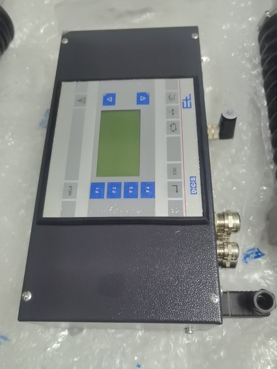 - 结构特点:圆柱形主体,黑色弹簧保护套,底部带安装法兰,顶部配备连接头,金属材质外壳