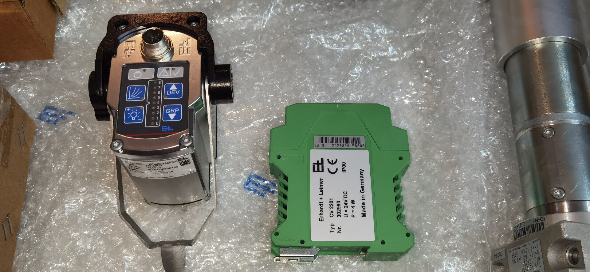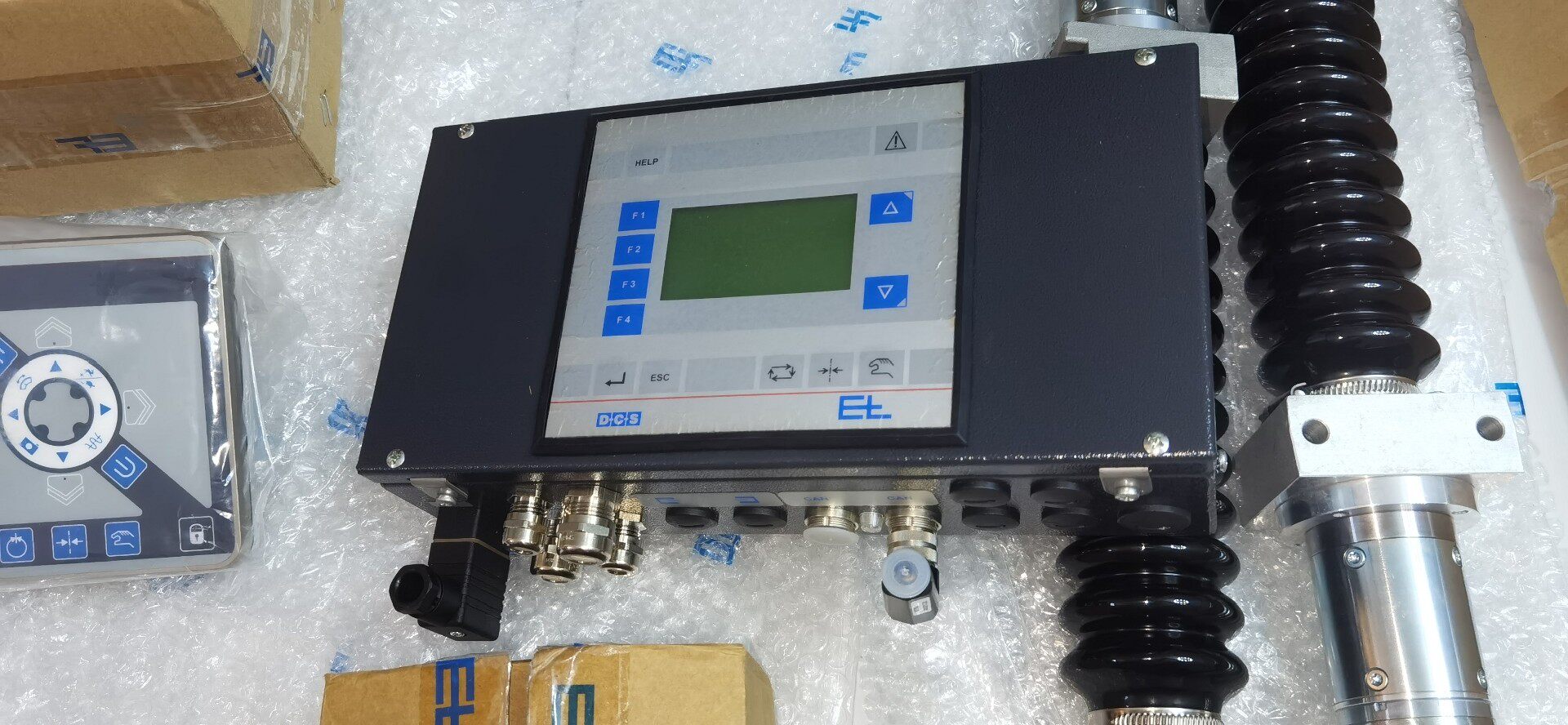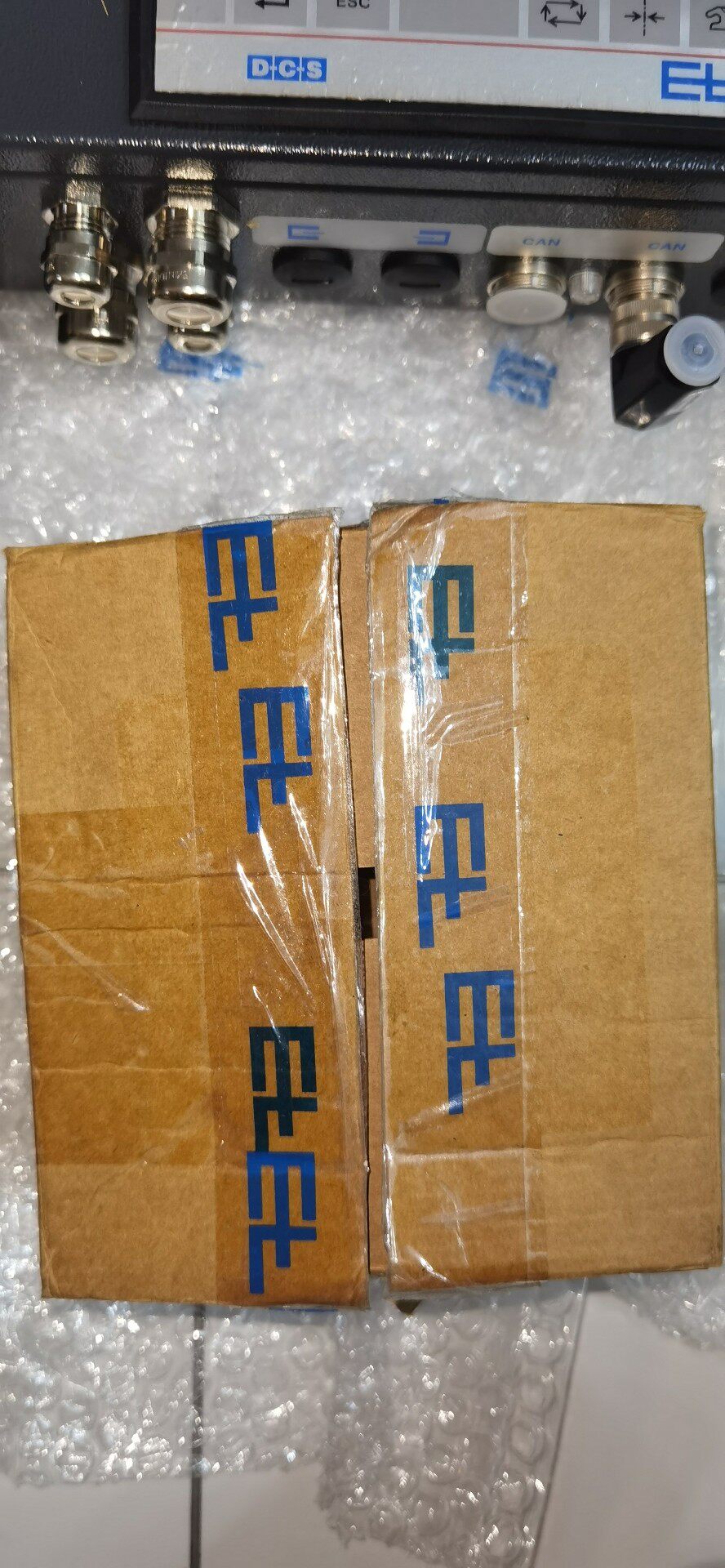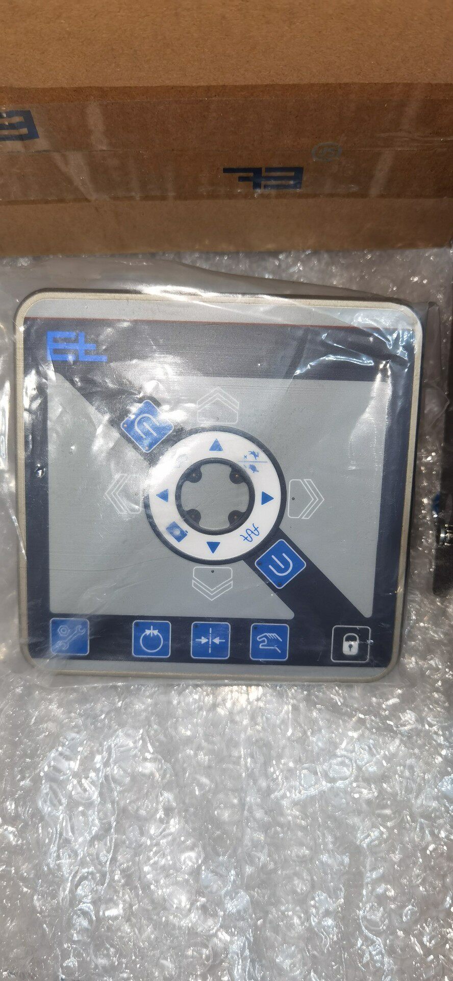 产品采用带蓝色“EL”标志的牛皮纸箱包装,内含控制面板(表面覆透明保护膜)、金属安装法兰盘及相关安装附件,包装完好,确保运输过程中的产品安全。控制面板设计紧凑,布局合理,便于操作人员快速上手与日常维护。
