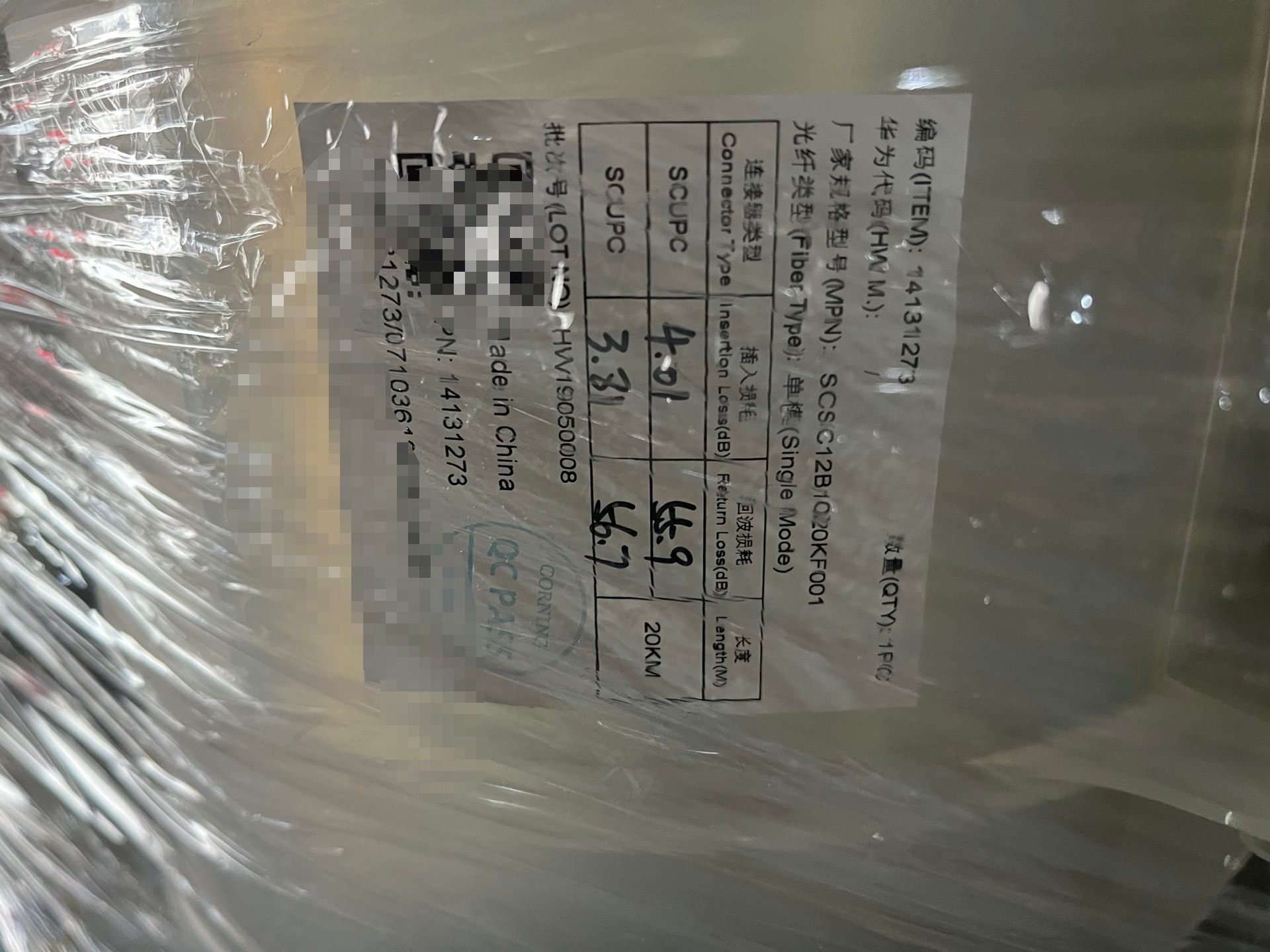 全新光纤跳线,SC/UPC接头,单模(Single Mode),长度4.9米,插入损耗<3.8dB,回损≥46.7dB,适合20KM传输,支持打包带走。
