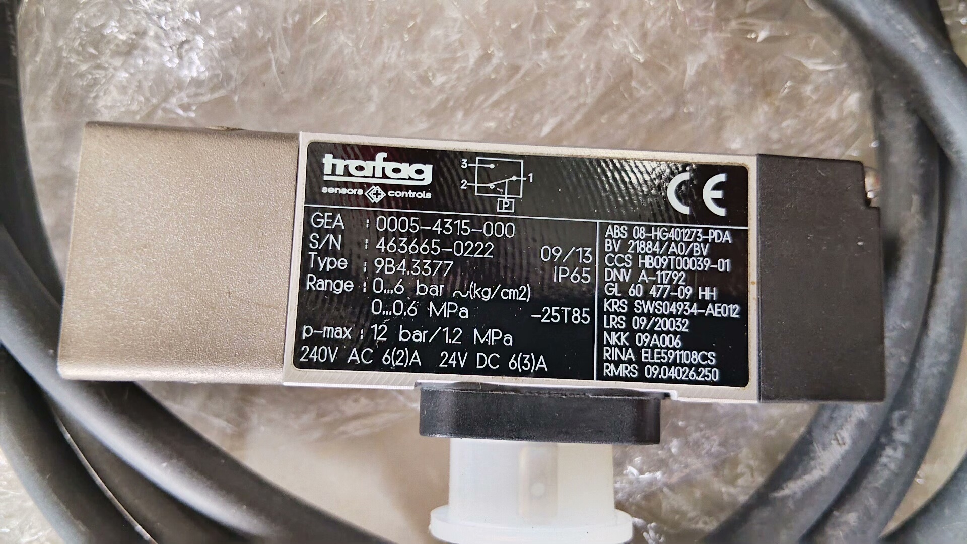 本产品为GEA原厂生产的分油机专用电磁阀,型号为0005-4315-000,Type编号9B4.3577,序列号463665-0222,是分油机液压或气动控制系统中的关键部件。