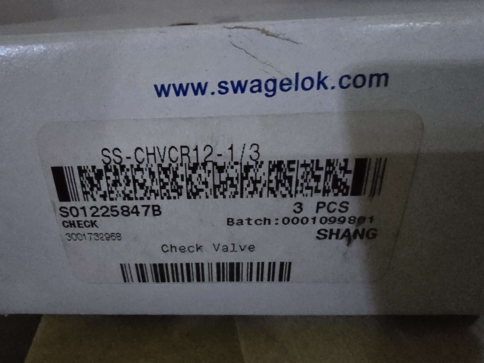 全新世伟洛克SS-CHVCR12-1/3止回阀,3件装,带原装SC-11清洁包装