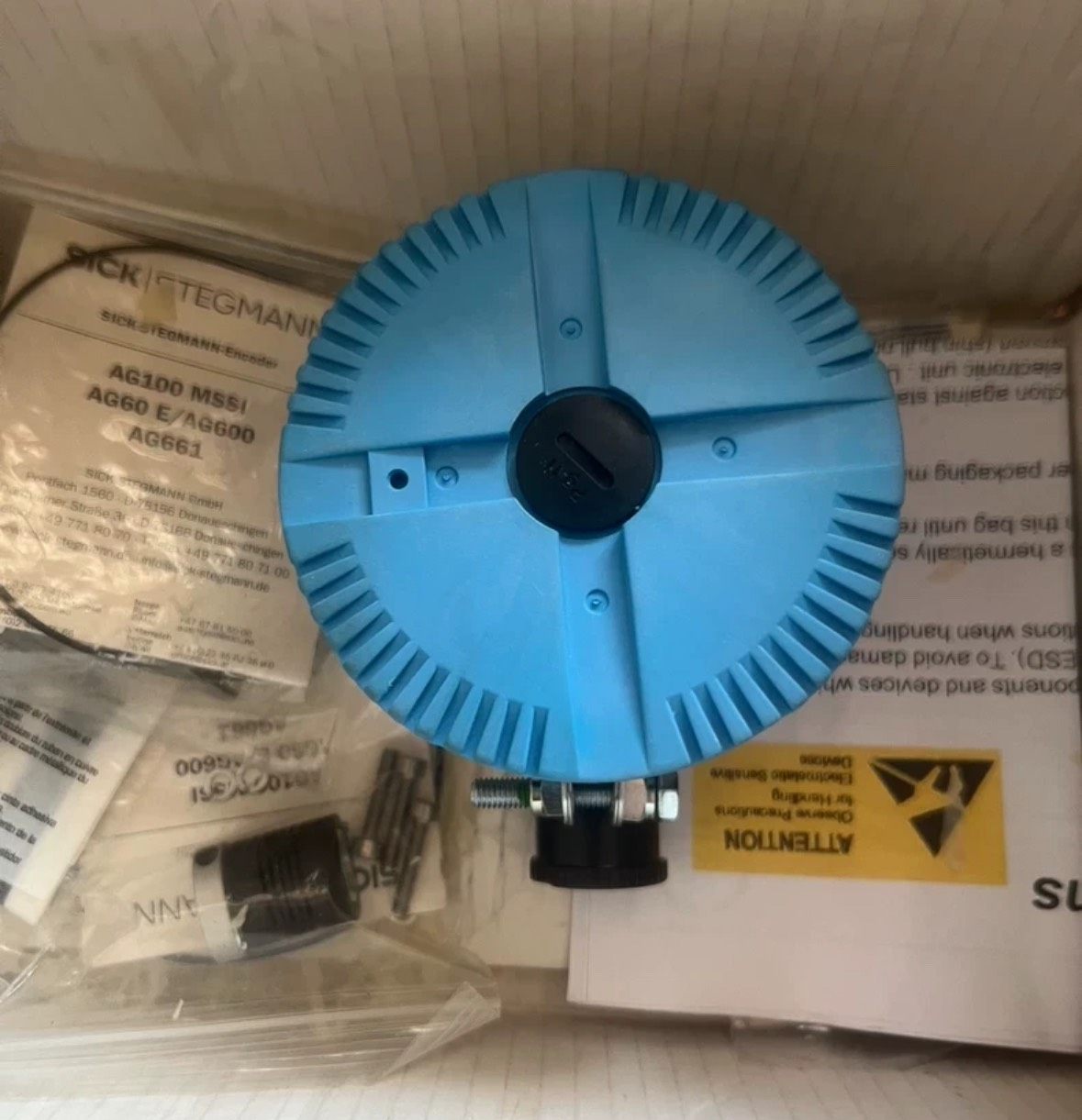 本产品为SICK STEGMANN品牌的AG100系列绝对值编码器,包含型号AG100-4124BC100000和AG100-41240000001,订货号分别为1033570和1033902,均为全新未使用的船坞定制备件。