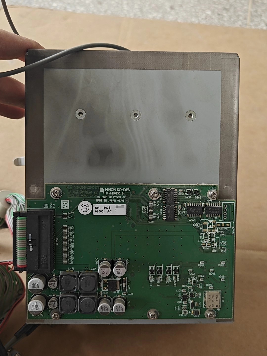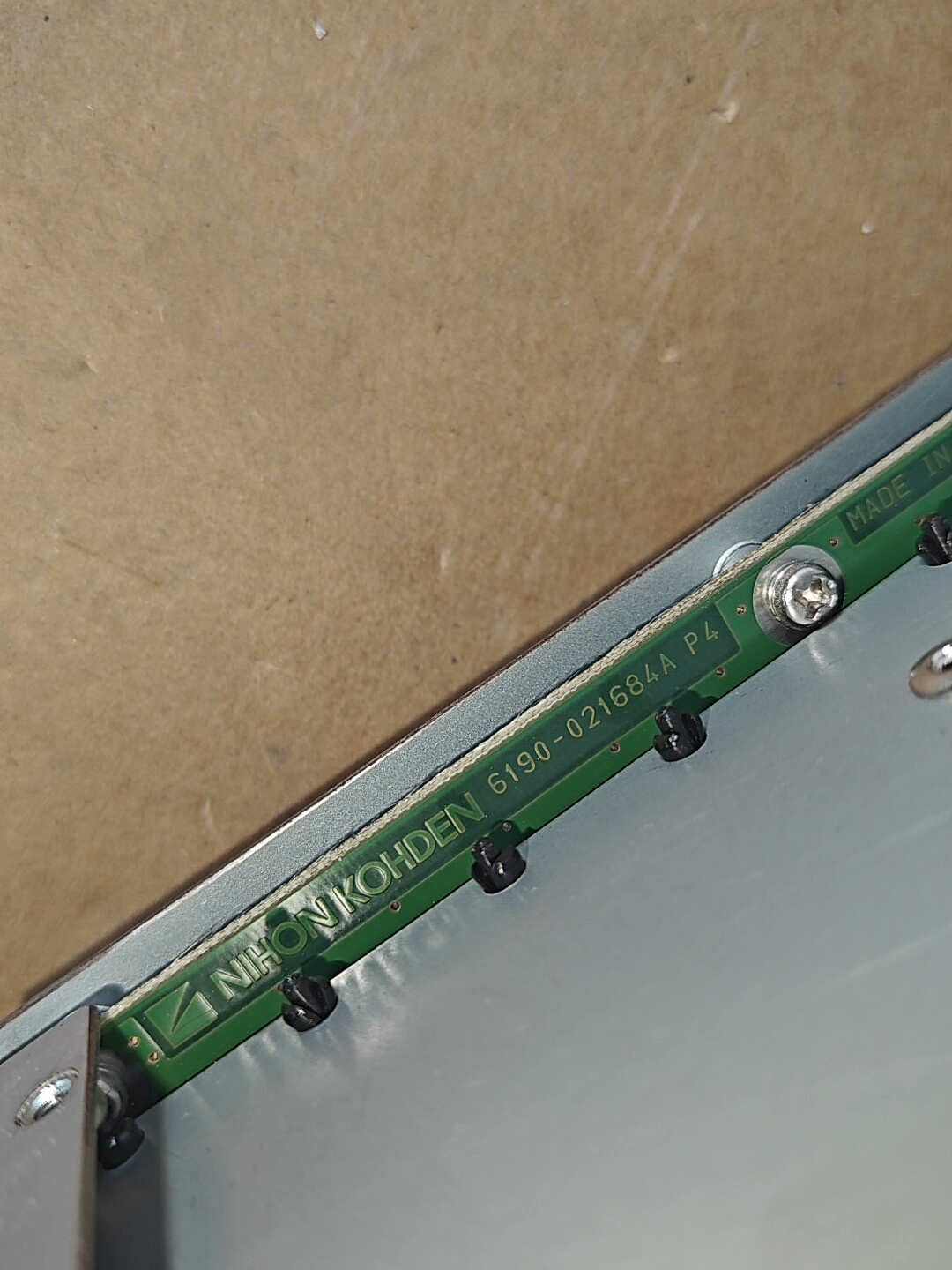 本产品为NIHON KOHDEN(日本光电)品牌下的WEP-4208K型号遥测监护拆机路由器,是从医疗遥测监护系统中拆卸下来的原装部件。设备整体采用金属外壳设计,结构紧凑,内部包含多组插槽、连接线束及电路板,外观存在一定使用痕迹,整体保持原装拆机状态,适用于医疗设备维修、备件替换等场景。