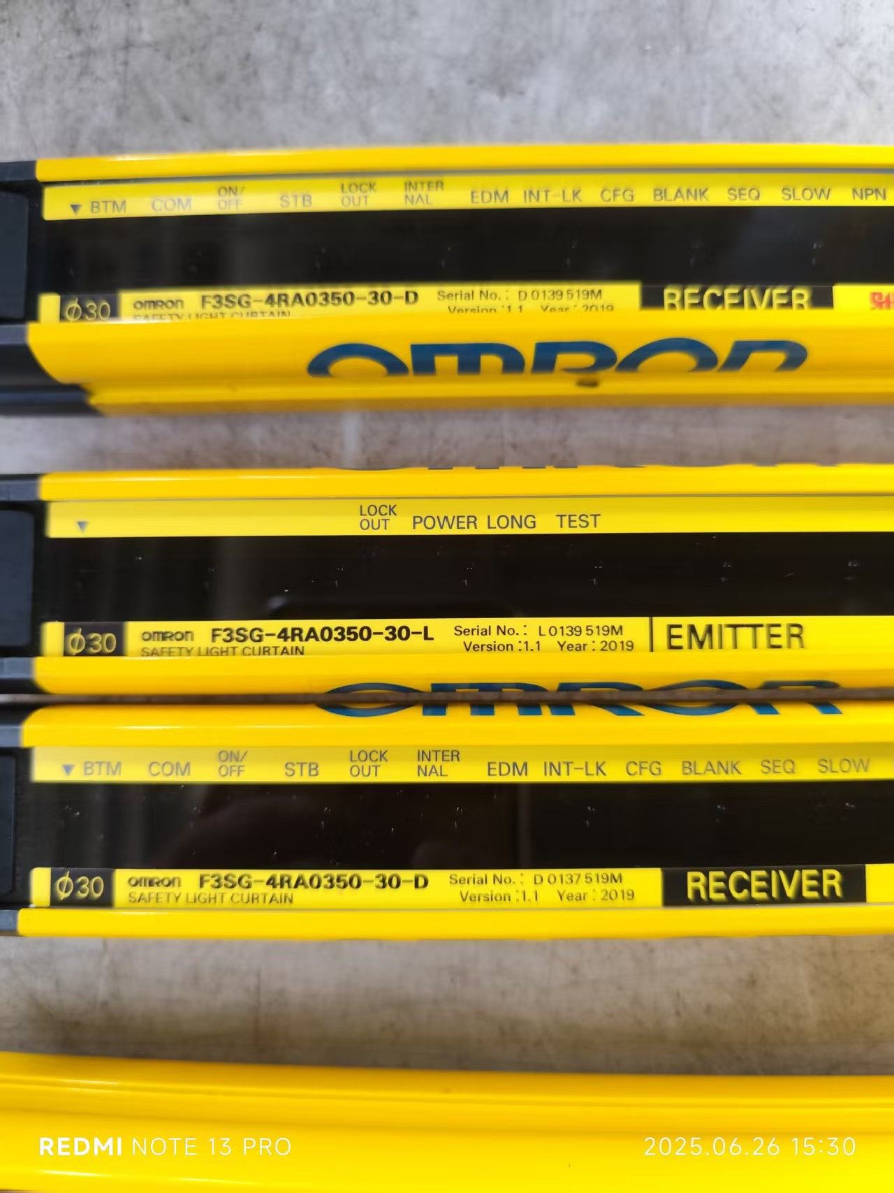 本产品为OMRON(欧姆龙)原装正品拆机安全光幕传感器,型号涵盖F3SG-4RA0350-30-L/D、F3SG-4RA0830-30-L/D、F3SG-4RA0990-30-L/D等多个规格,成色新,功能经测试完好,适用于各类工业自动化设备的安全防护场景。
