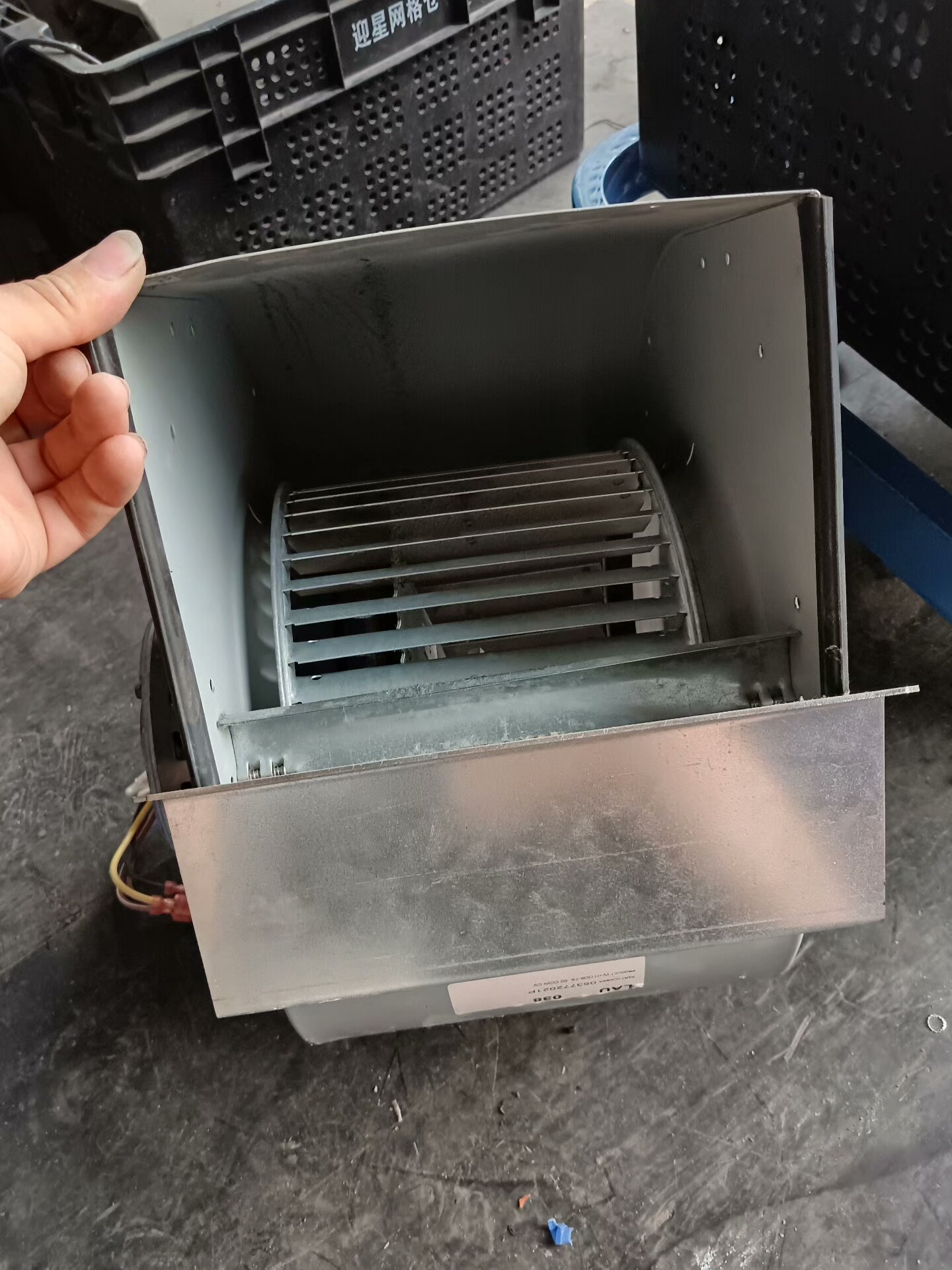 具体技术参数(如电压、电流、功率、转速、风量等)请参考产品铭牌,由于拆机原因,图片中未完整显示铭牌信息,实际参数以实物铭牌为准。