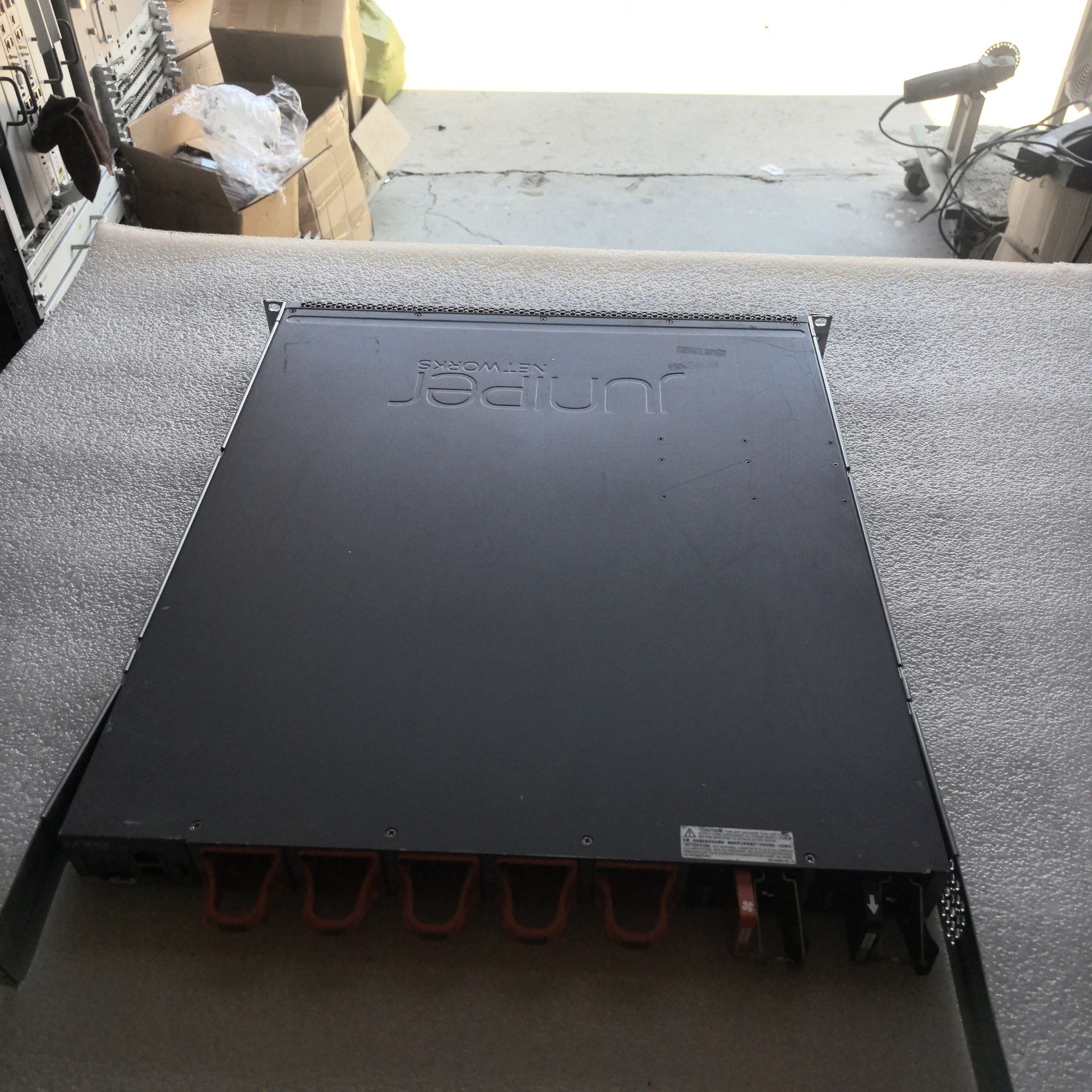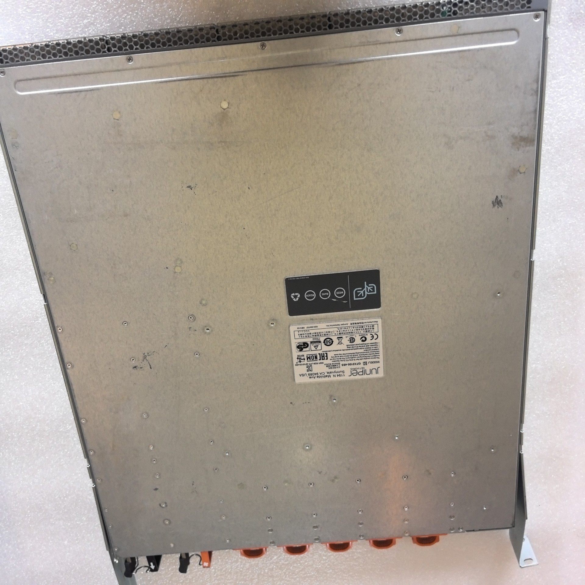 Juniper Networks QFX5100-48S-AFO是一款高性能1U机架式数据中心交换机,专为满足企业级网络和数据中心的高带宽需求而设计。设备采用灰色金属外壳,结构坚固,成色良好,配备双冗余电源,确保网络运行的稳定性和可靠性。