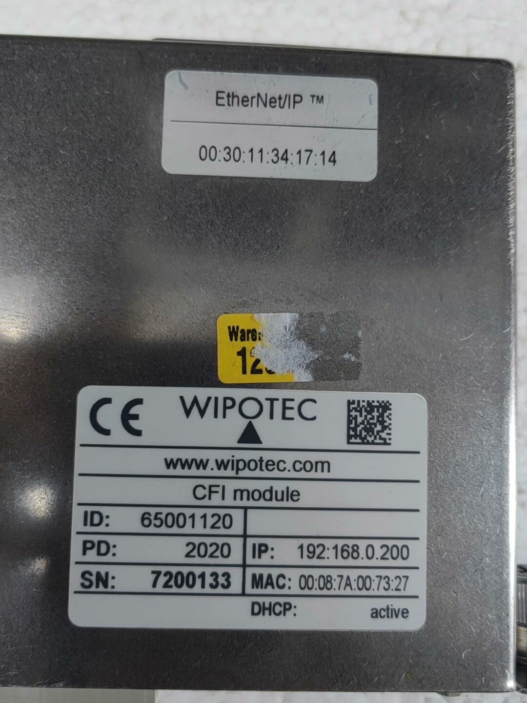 本产品为德国WIPOTec品牌的称重控制传感器,型号为65001120,属于拆机件,成色较新。采用金属外壳设计,结构坚固,适用于工业环境下的称重检测与控制,具备EtherNet/IP网络通信功能,可实现数据的实时传输与集成。