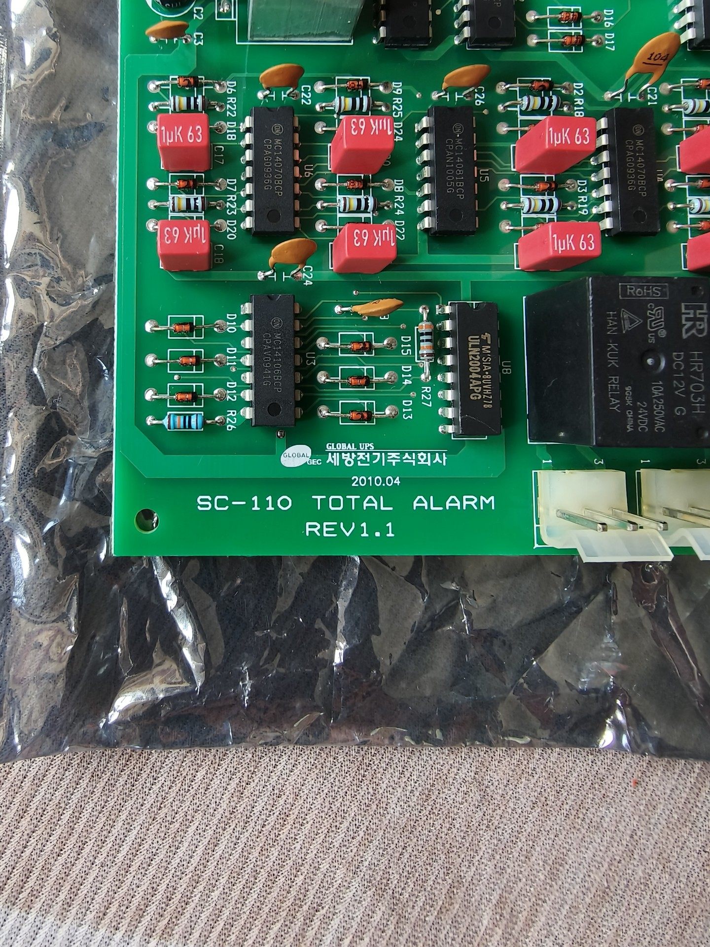 GLOBAL SC-110 TOTAL ALARM 报警模块(版本REV1.1)是一款专为韩国GLOBAL UPS系统设计的全新原装正品配件,主要用于UPS系统的总报警信号处理与控制。该模块通过集成的电子元件实现对UPS运行状态的监测与报警功能,确保系统异常时能及时发出警示信号,保障UPS系统的稳定运行。