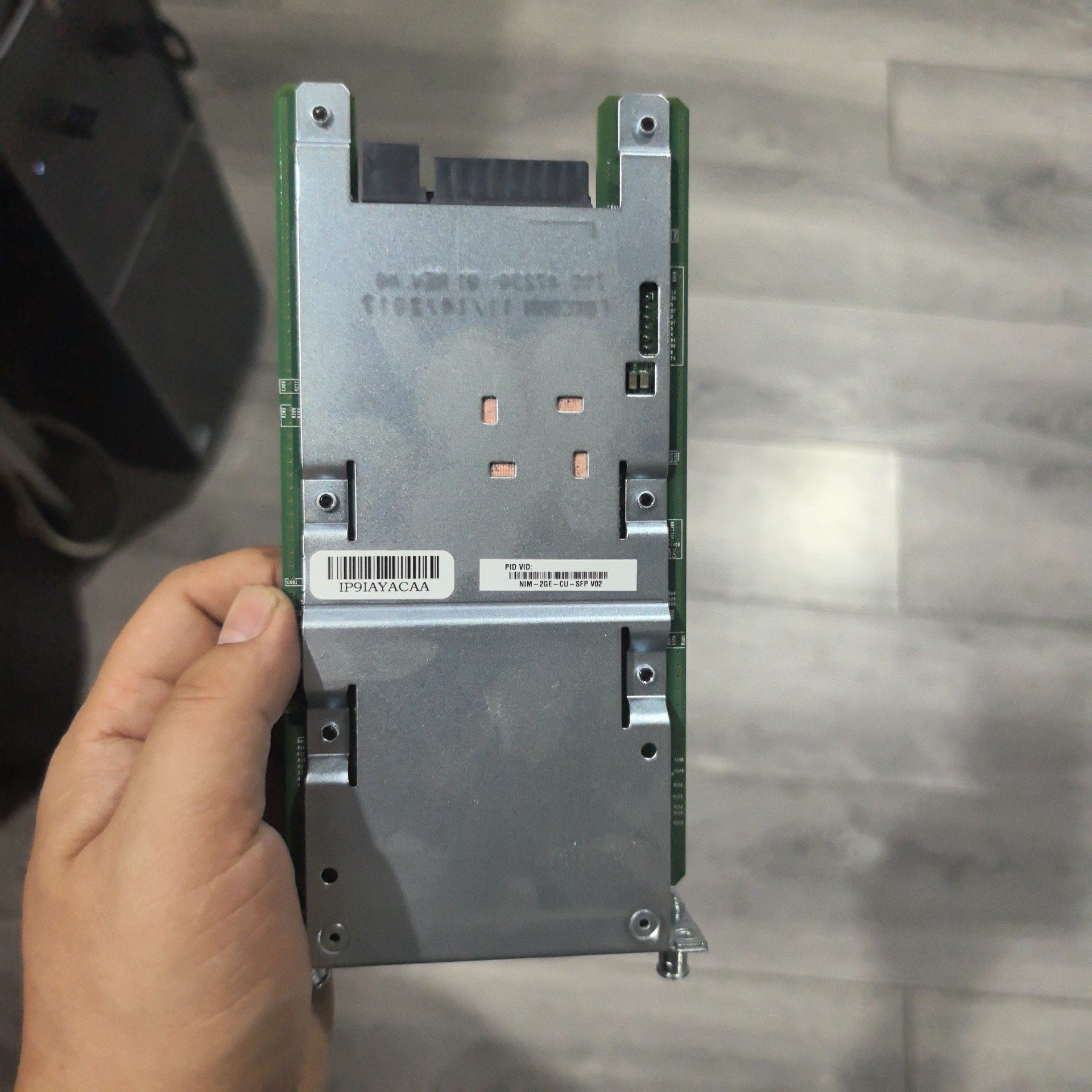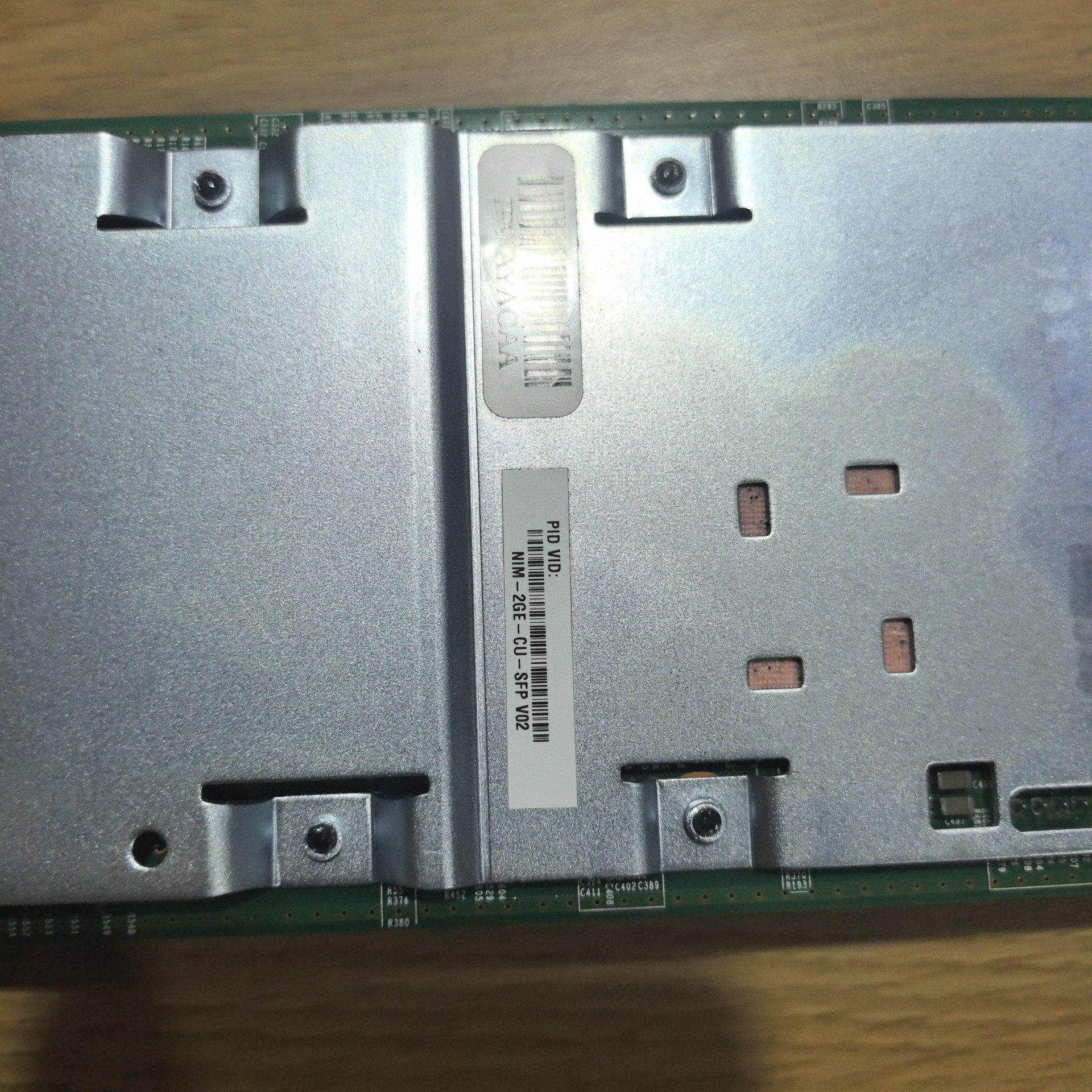 CISCO NIM-2GE-CU-SFP 路由器模块接口卡是思科原厂出品的网络扩展模块,采用银色金属外壳设计,结构坚固,配备固定螺丝确保安装稳定。模块集成2个SFP接口(SFP 0、SFP 1)和2个GE接口(GE 0、GE 1),支持多种网络连接需求,为路由器提供灵活的端口扩展能力。