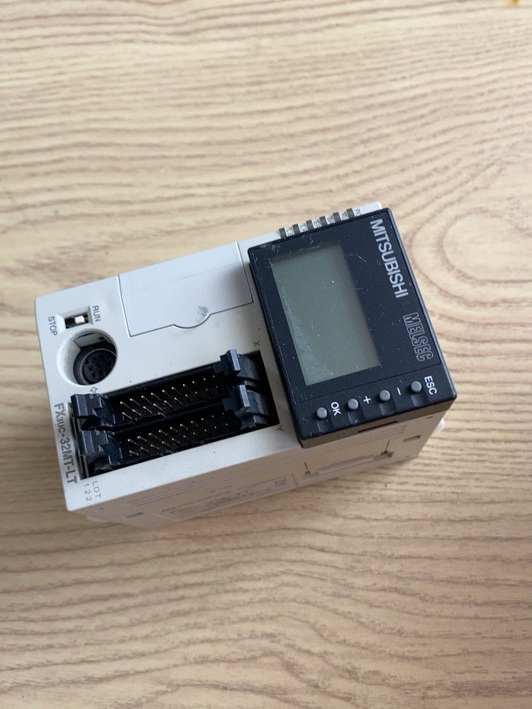 MITSUBISHI/三菱 FX3UC-32MT-LT 是一款紧凑型可编程逻辑控制器(PLC),属于三菱FX3U系列的衍生型号,专为小型自动化设备和生产线控制设计。该产品采用白色主体结构,顶部集成黑色显示屏及ESC、+、OK操作按钮,便于参数设置与状态监控;底部设有X(输入)和Y(输出)接口,侧面配备RUN/STOP开关及通信接口,整体设计紧凑,安装便捷。
