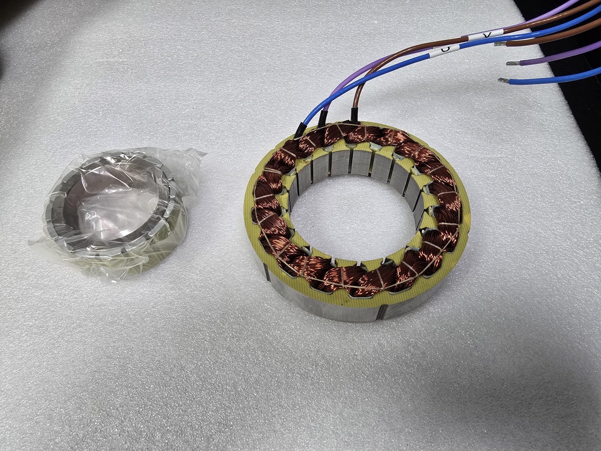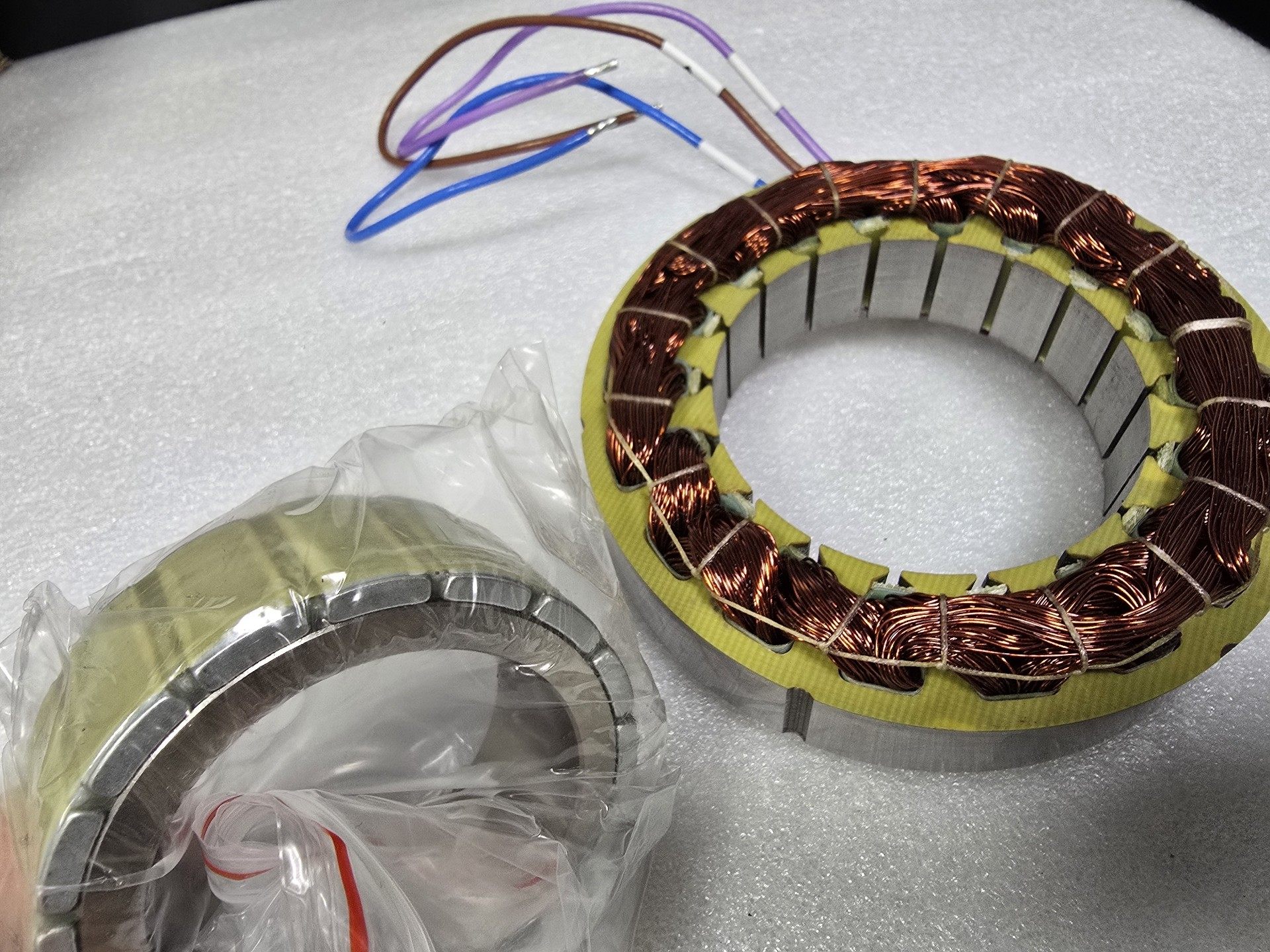 全新国产无框电机 130框号 功率1180瓦,电压48V,电流28A,扭矩3.5nm,3200转 定子直径132mm,中空79mm,高度38.5 转子直径78mm,中空57mm 项目库存10台