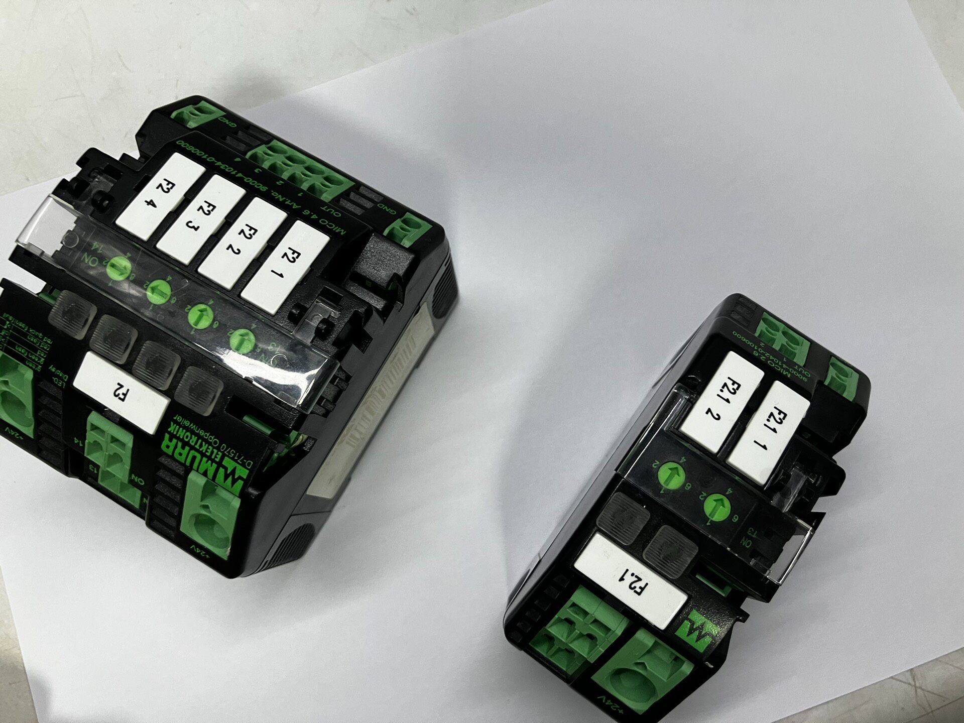 本产品为德国MURR(穆尔)品牌的智能电流分配器,包含两款型号:MICO 4.6(4路输出)和MICO 2.6(2路输出),成色新,实物如图所示,适用于工业自动化领域的电流分配与管理。