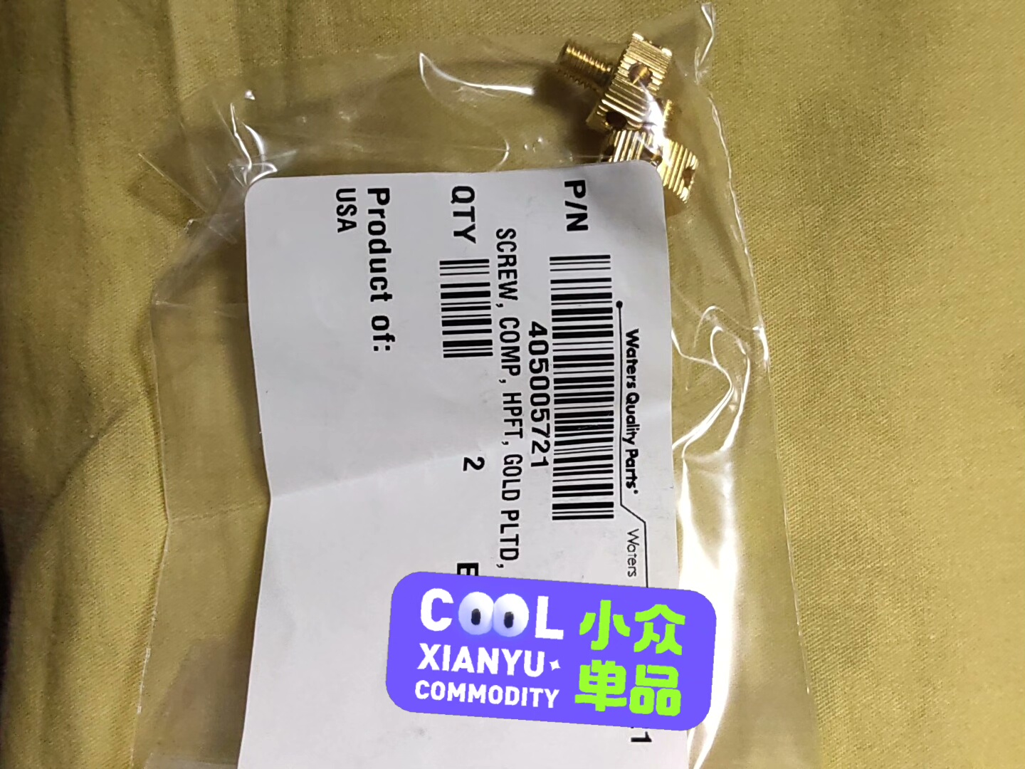 Waters 700003116(也称4050、405005721)是一款全新未拆封的工业组件,采用镀金工艺处理,具备良好的导电性和耐腐蚀性,确保在工业环境中稳定运行。产品包装于透明塑料袋内,标签清晰标注产品型号、规格及产地(美国),属于Waters Quality Parts系列,品质可靠。