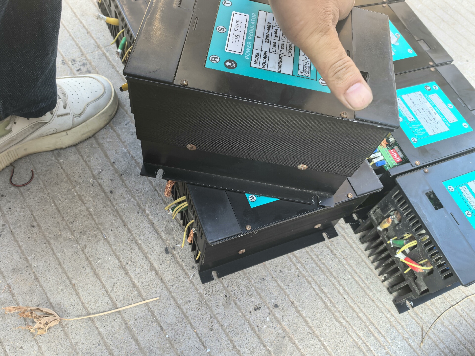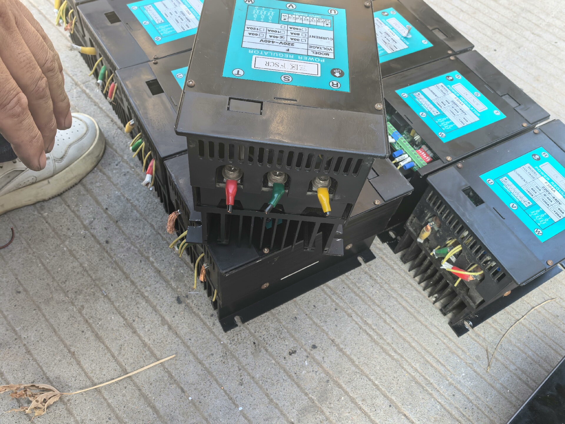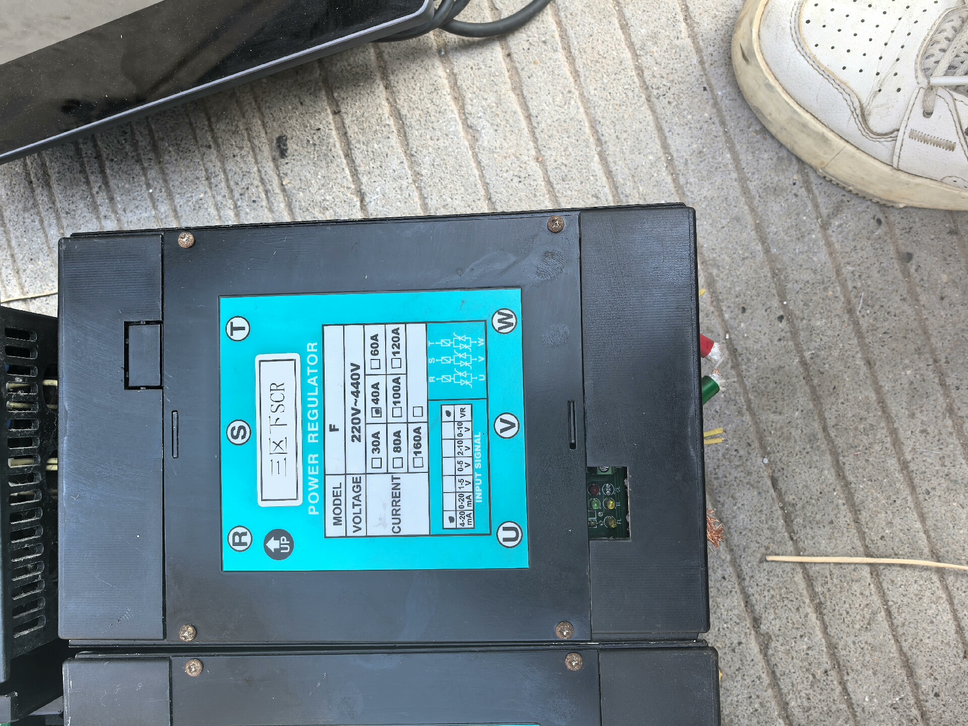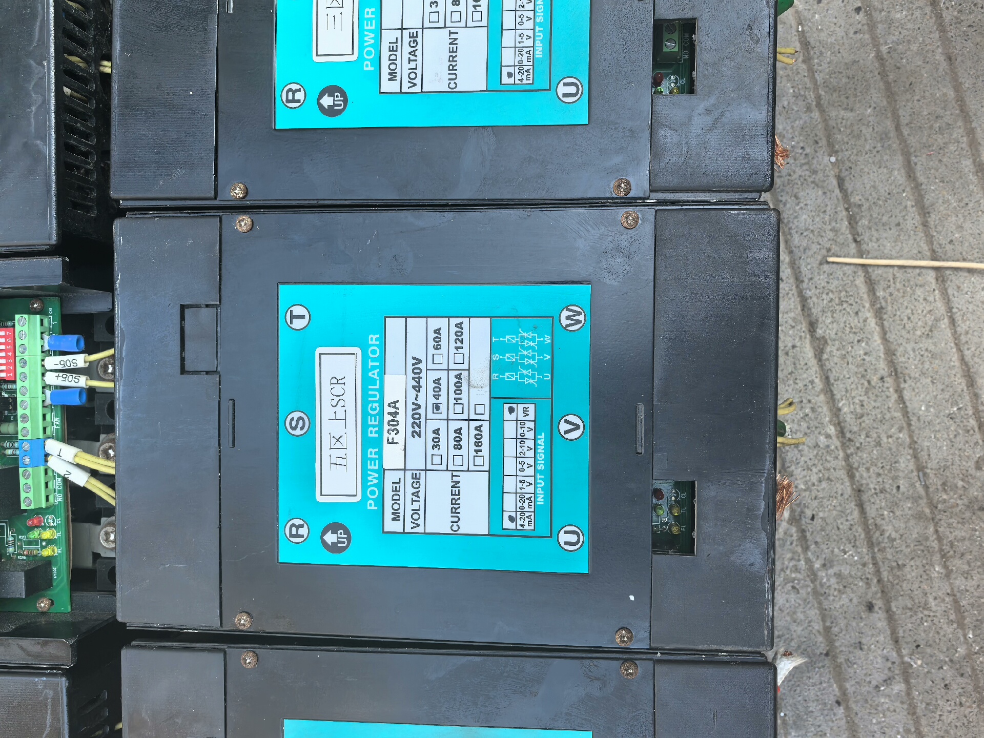 台湾CAHO宣荣F304A大功率电热调整器是一款专业的工业级电力控制设备,主要用于电热设备的功率调节与相位控制。设备采用黑色金属外壳设计,内置高效散热片,确保在长时间高负荷运行下的稳定性。顶部蓝色标签清晰标注型号、电气参数及接线方式,方便安装与维护。