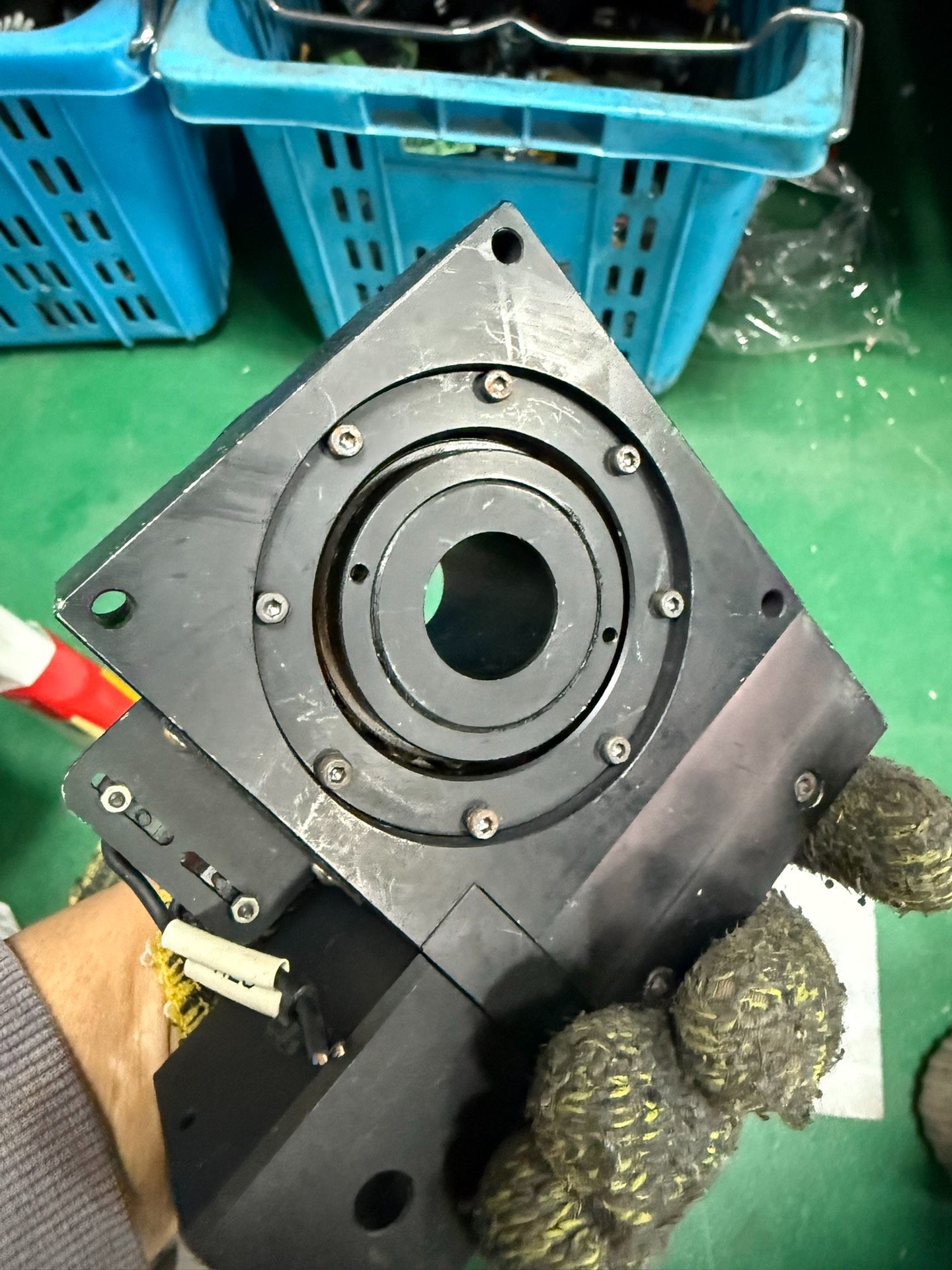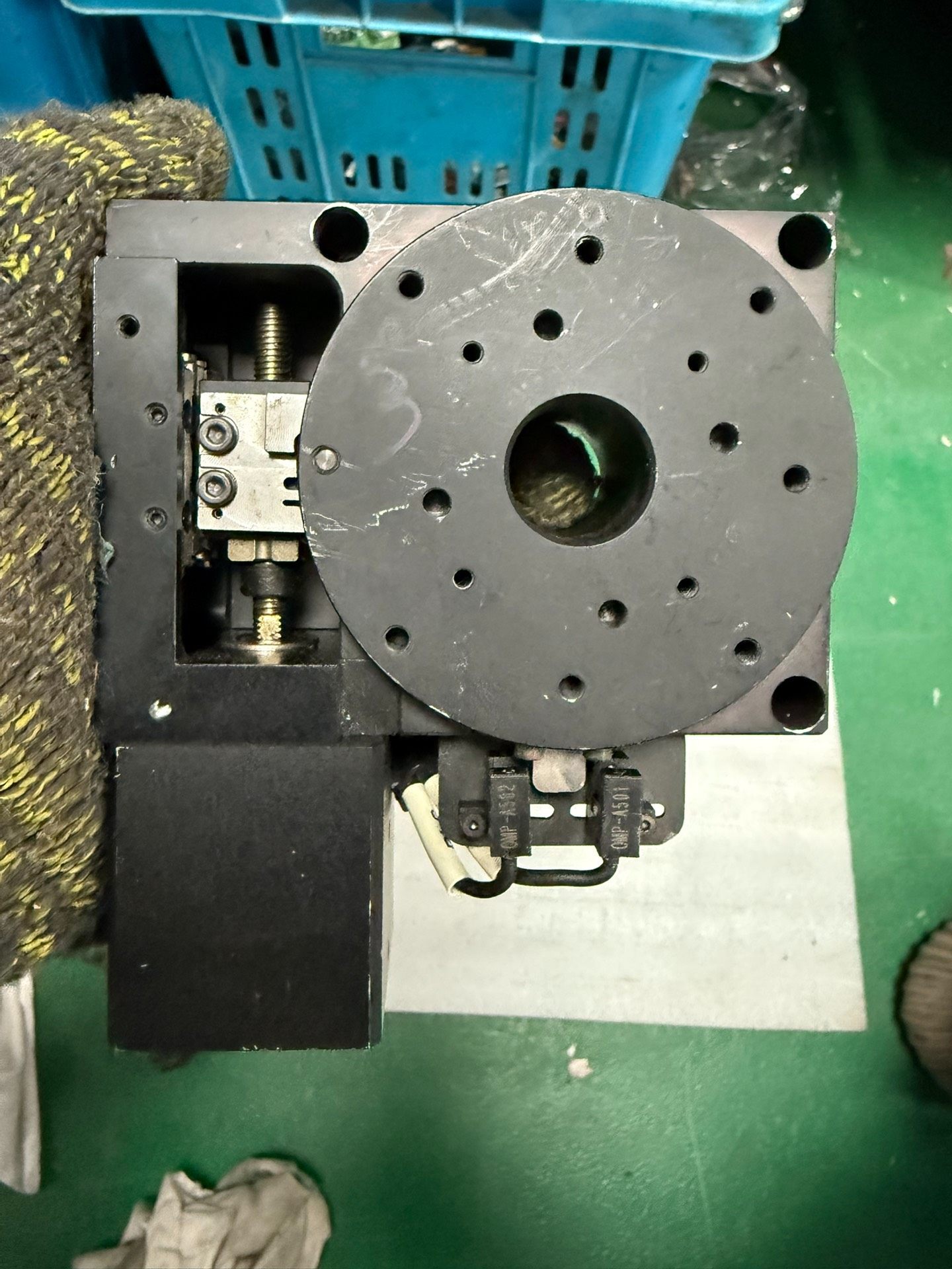 本产品为未知品牌 CMP-4501 型号定位转盘,属于精密中空旋转平台类部件。采用黑色金属材质打造,结构紧凑,集成电机驱动模块,具备高精度旋转定位功能,适用于各类自动化设备中的工件旋转、定位及检测场景。