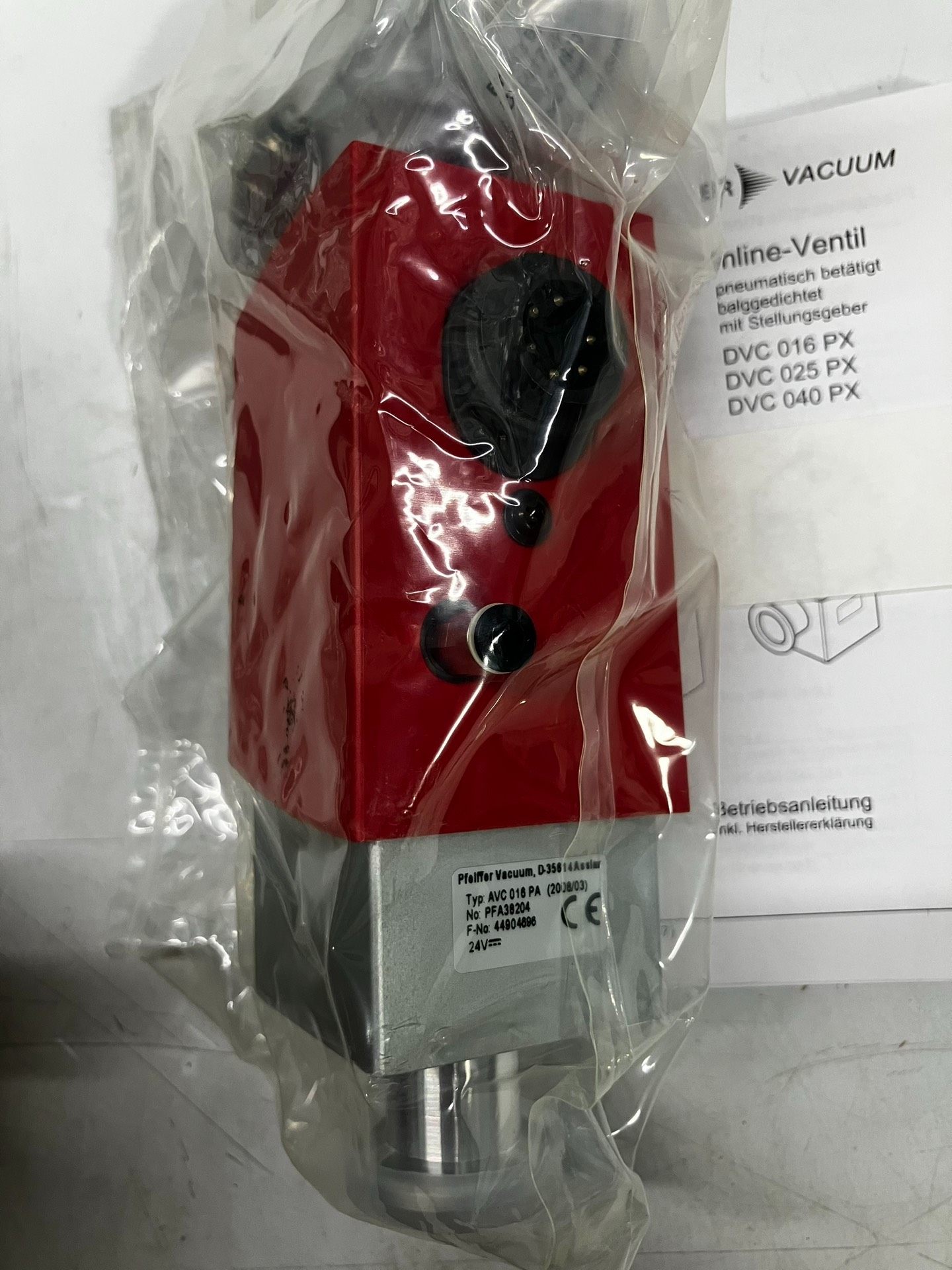 PFEIFFER VACUUM(普发真空)AVC016PA KF16真空阀是一款全新的气动操作真空阀门,专为真空系统中的气流控制设计。产品采用红色顶部与银色主体的经典外观,结构紧凑,性能可靠,适用于多种工业真空应用场景。