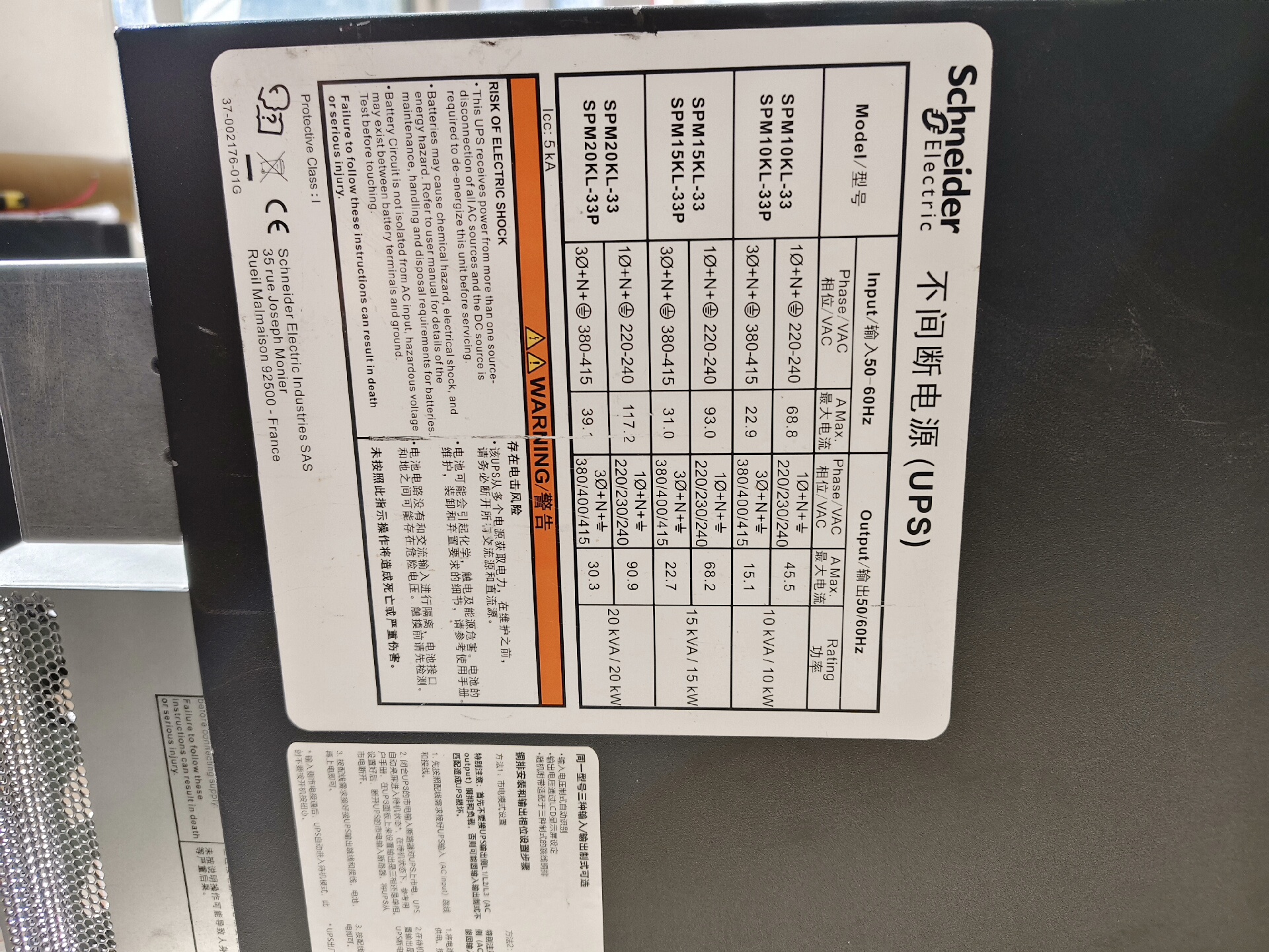 施耐德SPM20KL-33P UPS电源产品说明