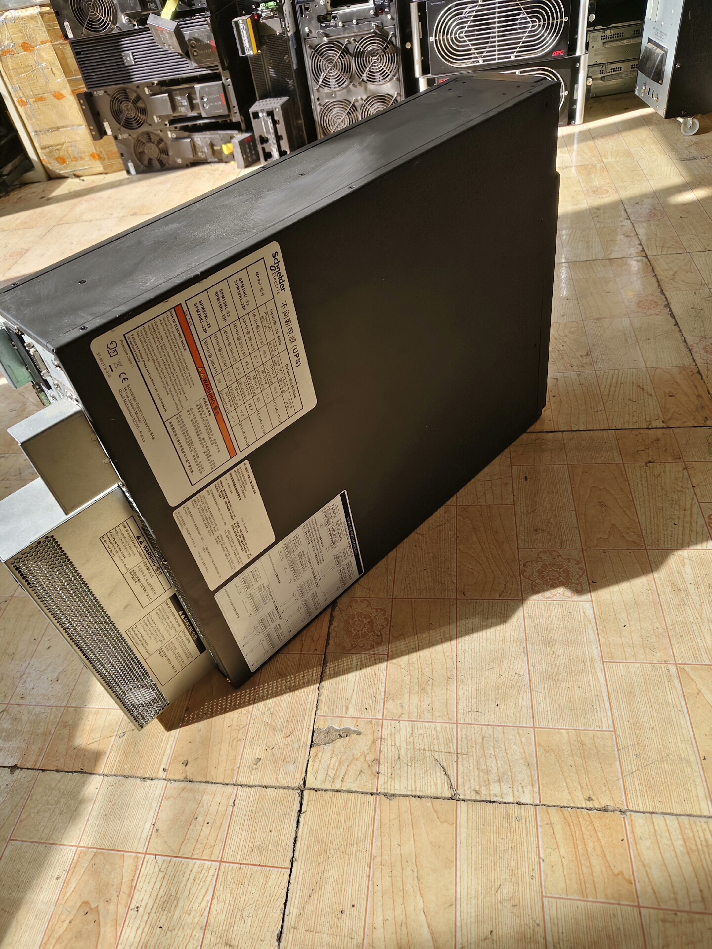 施耐德SPM20KL-33P是一款高性能的工业级不间断电源设备,专为需要稳定电力保障的场景设计。该设备采用黑色立式结构,整体造型紧凑,正面配备直观的显示屏和便捷的控制按键,可实时监控运行状态并进行参数调节;侧面的密集散热格栅确保设备在长时间运行中保持良好的散热效果,提升稳定性和使用寿命。