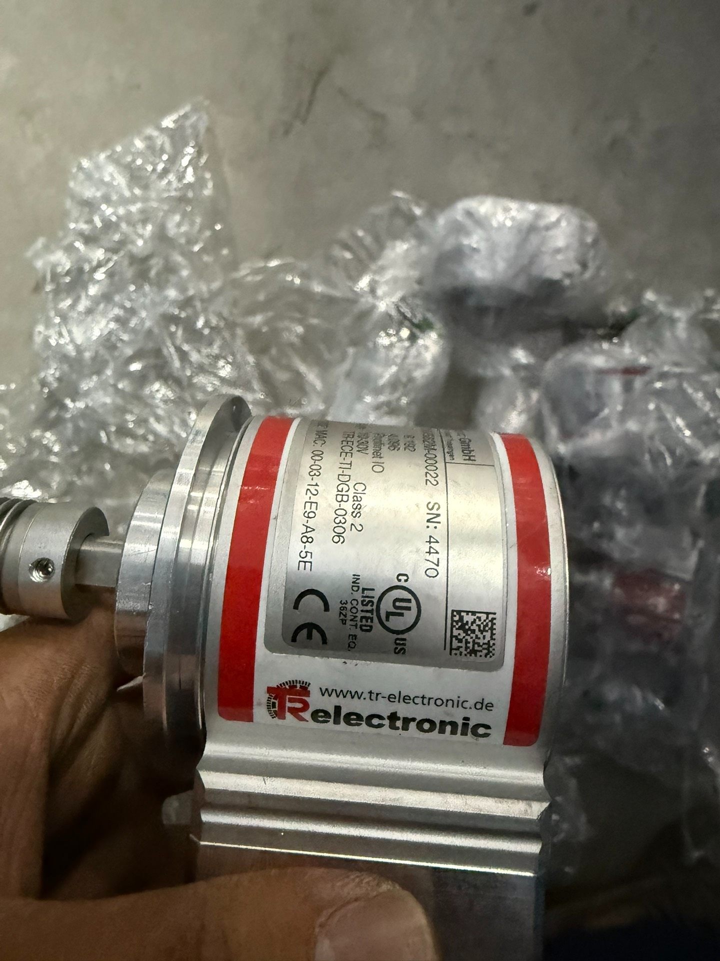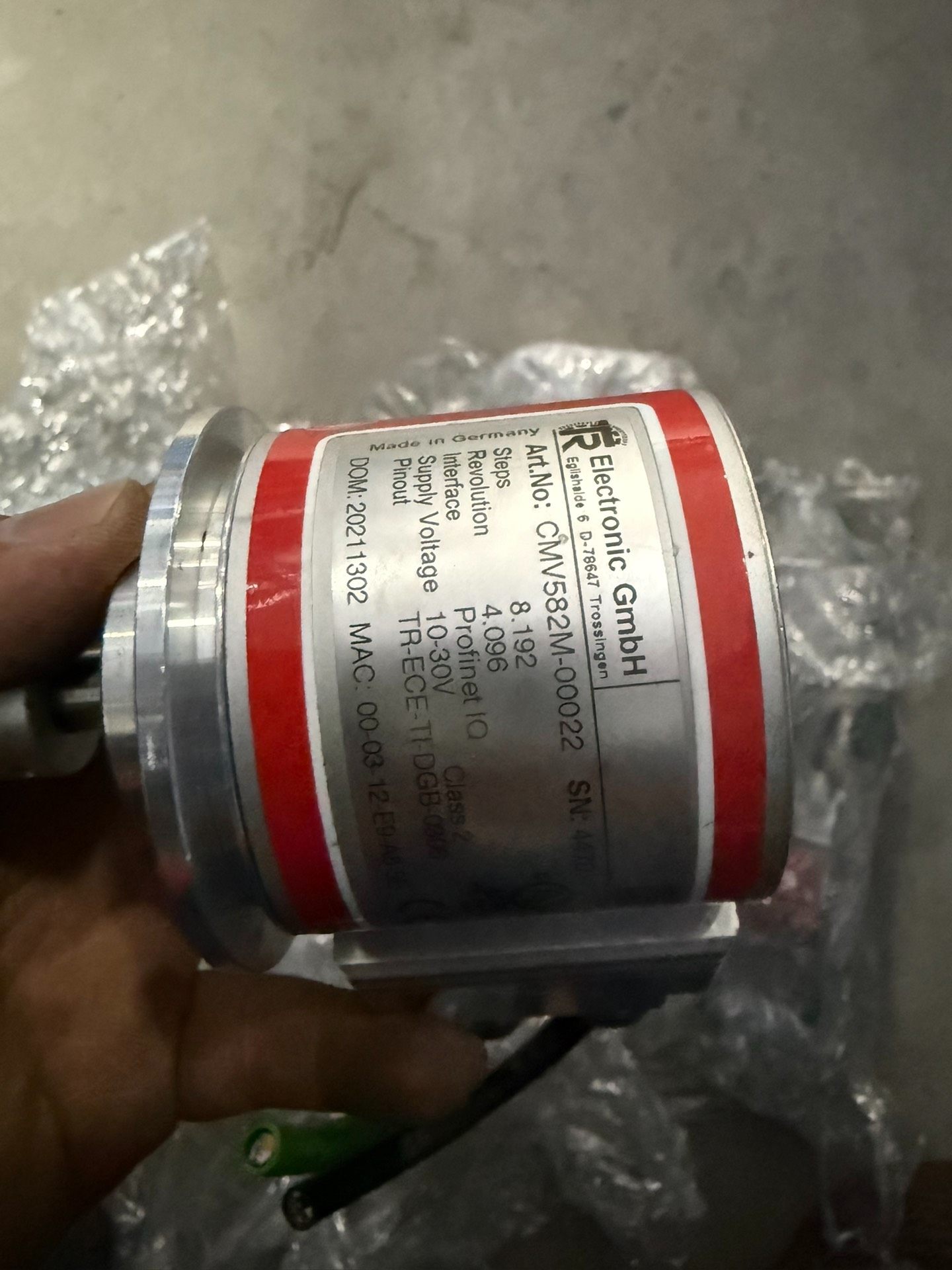 本产品为德国TR帝尔(TR Electronic GmbH)生产的CMV582M-00022型号旋转编码器,数量共8个,均为2021年出厂新品。编码器采用高精度设计,外壳为金属材质,具备良好的抗干扰性和环境适应性,适用于各类工业自动化场景中对旋转轴位置、速度及角度的精确测量与反馈。