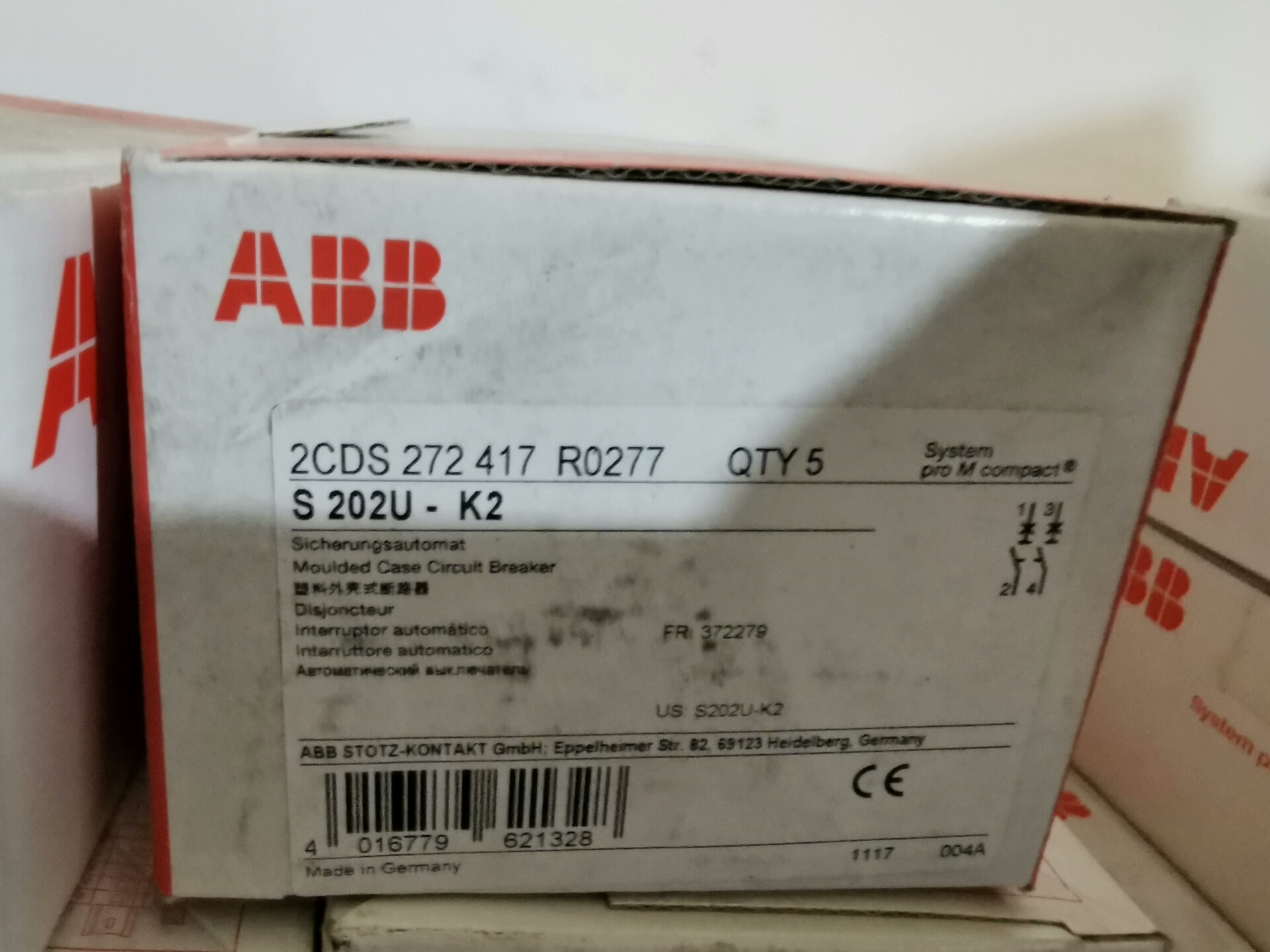本产品为ABB品牌断路器,共计33盒打包出售,适用于各类低压配电系统,提供可靠的电路保护功能。
