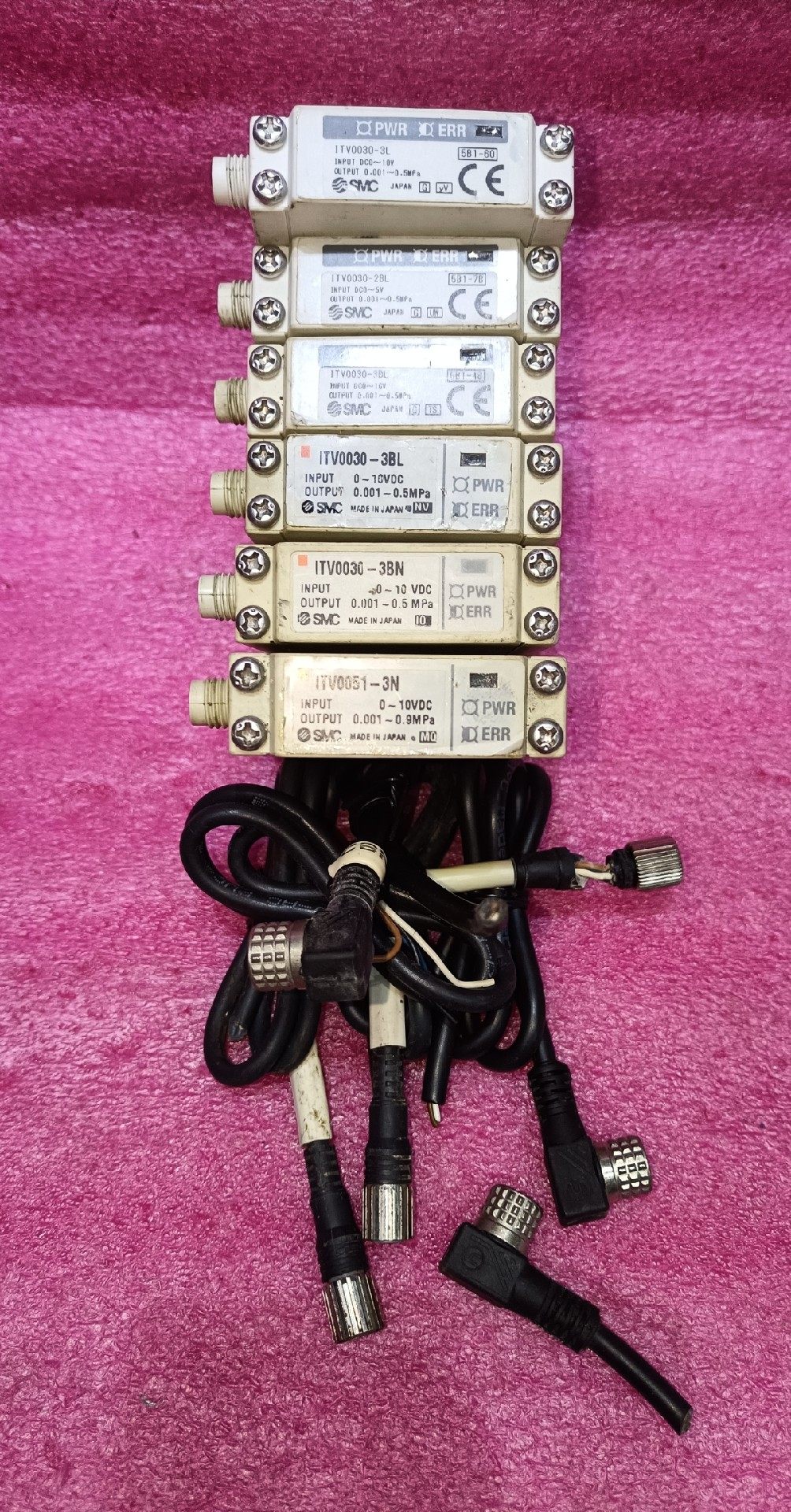 本产品为拆机SMC电气比例阀,包含ITV0030-2BL、ITV0030-3L、ITV0030-3BL、ITV0030-3BN及ITV0051-3N等多种型号,均为日本原装进口,经过严格检测,确保功能正常。产品配带有插头线,线缆长度不一,外观存在正常使用痕迹,性价比高,适用于各类气动控制系统的压力精确调节。