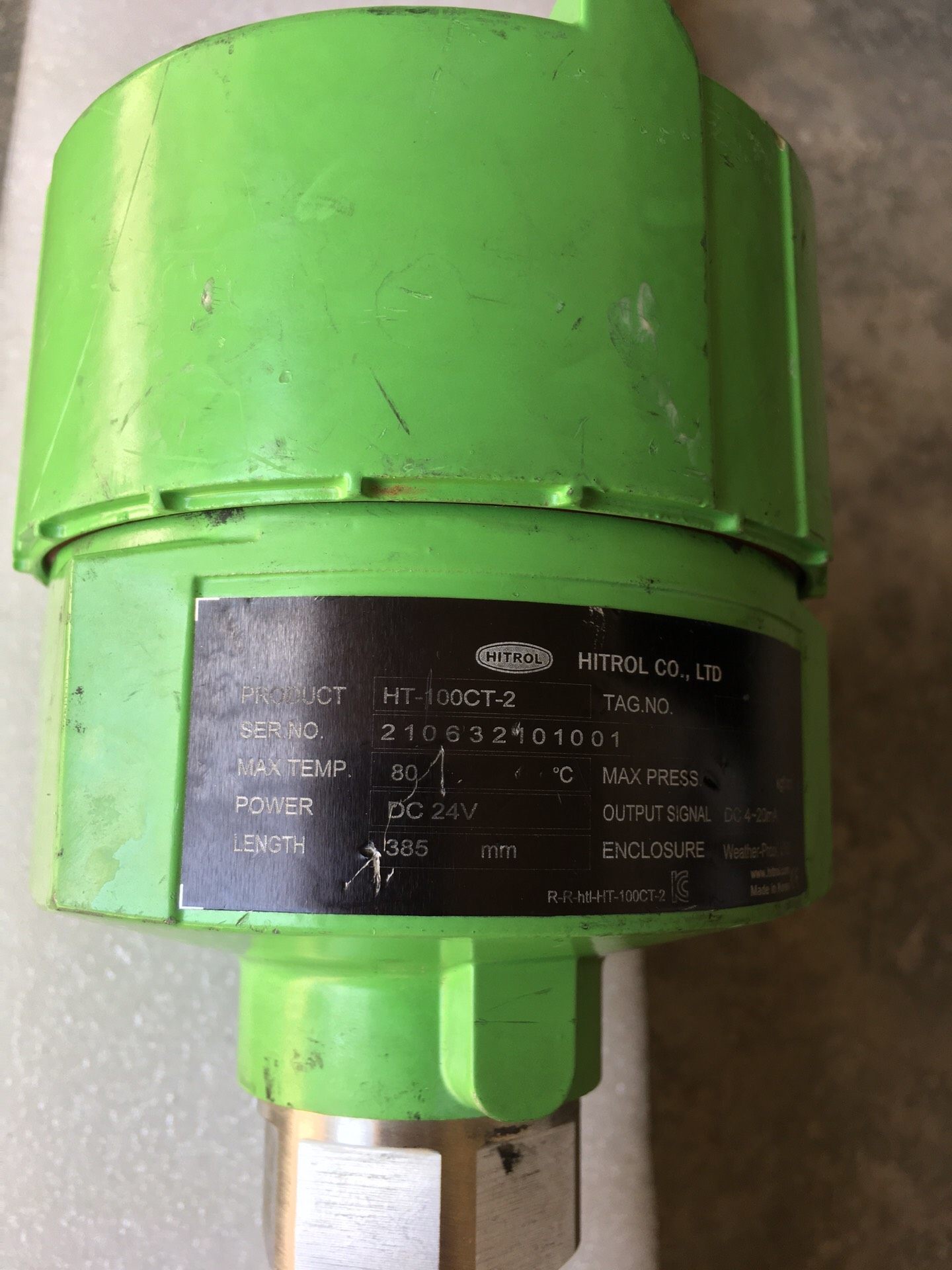 韩国HITROL HT-100CT-2液位计是一款原装拆机的工业级液位检测设备,整体采用绿色防护外壳设计,搭配金属长杆探头,结构坚固耐用,适用于多种工业环境下的液体液位测量。产品经过拆机检测,功能完好,可稳定实现液位的实时监测与反馈。