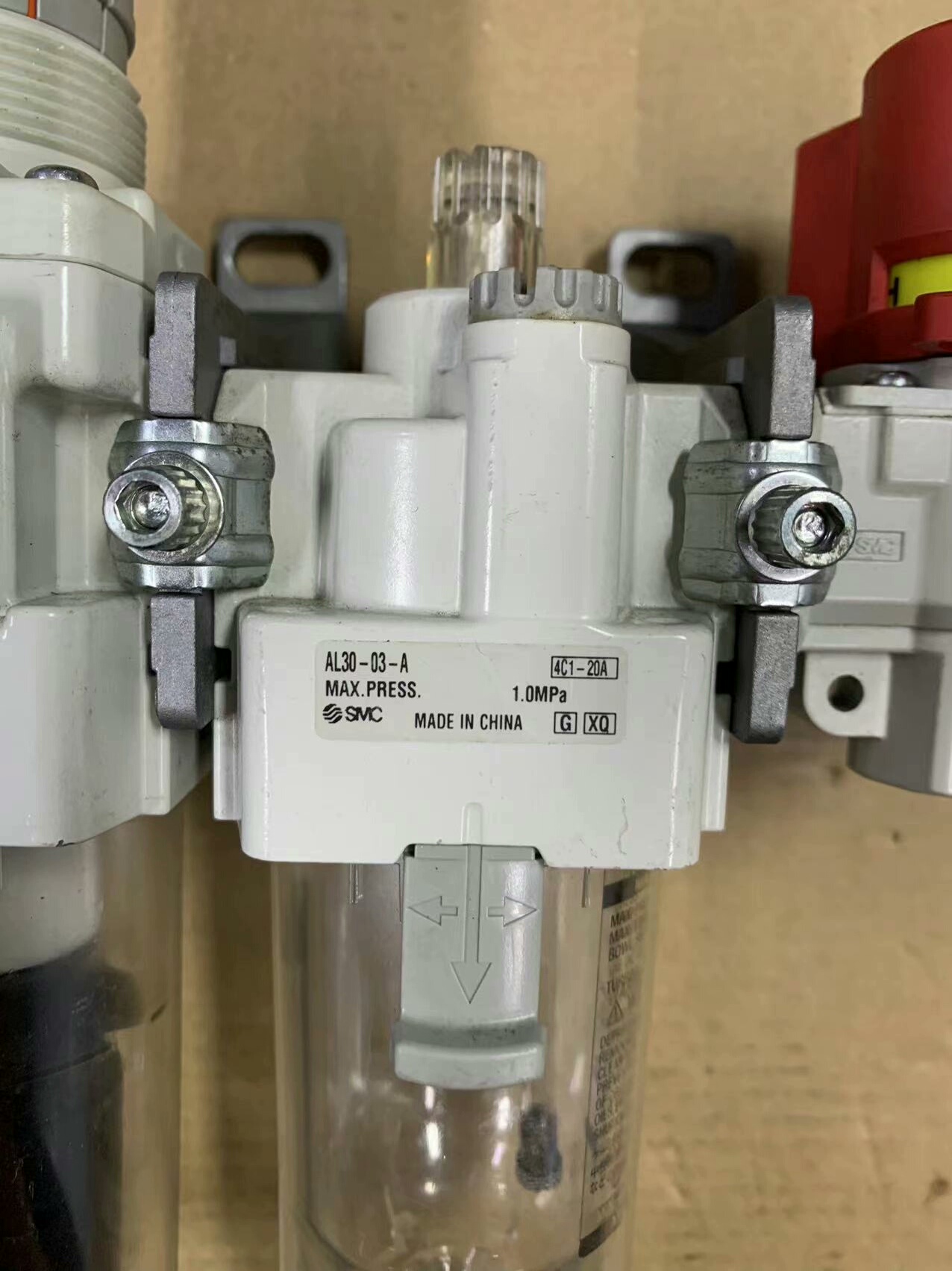 - 油雾器/截止阀:红色手动截止阀便于快速切断气源,油雾功能可向气动元件提供适量润滑油,减少磨损。