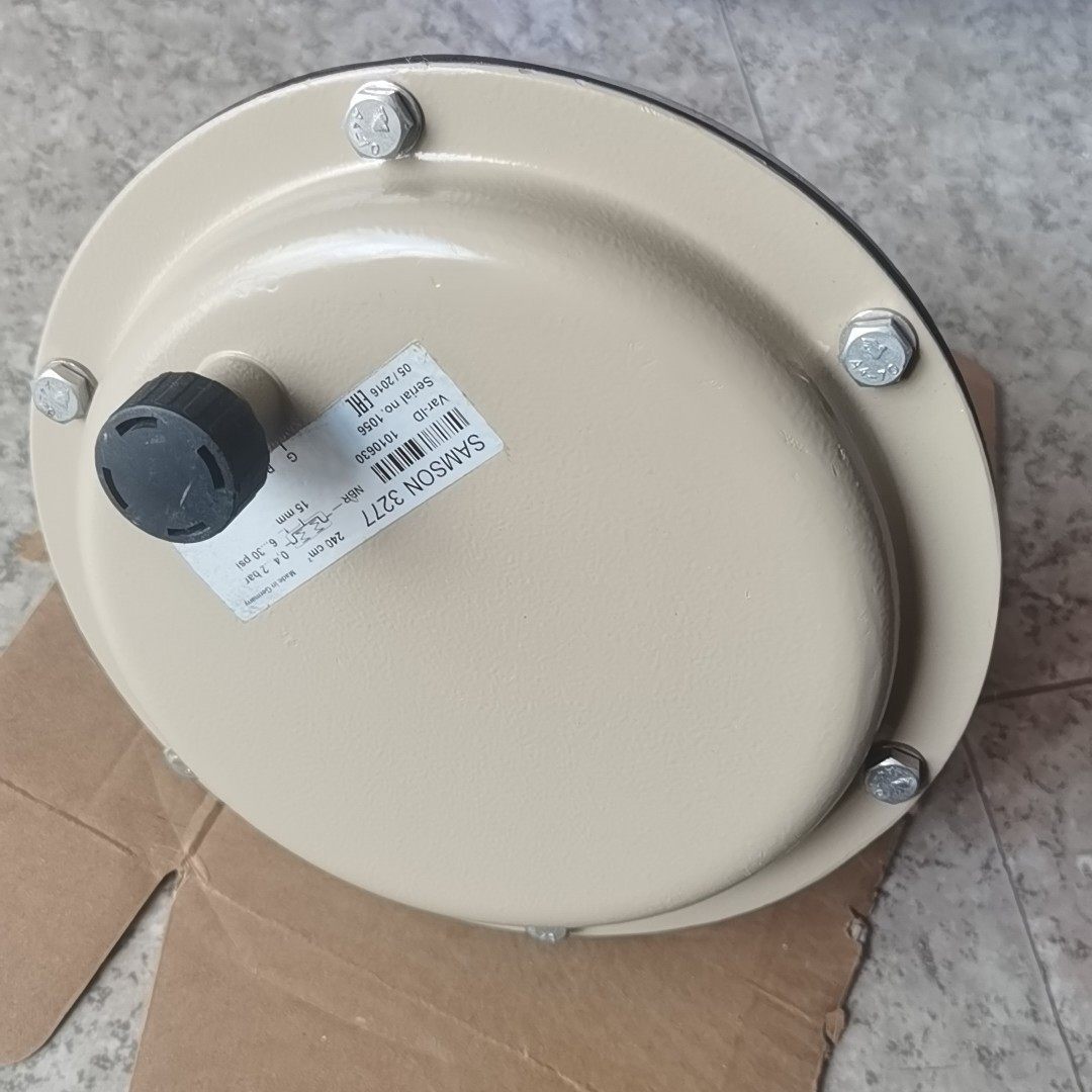 萨姆森3277型气动执行器是一款性能稳定、可靠性高的工业自动化控制元件,广泛应用于各类流体控制场景。产品采用圆形米黄色外壳设计,表面光滑且带有螺栓固定结构,确保安装稳固,底部配备标准连接口,便于系统集成。