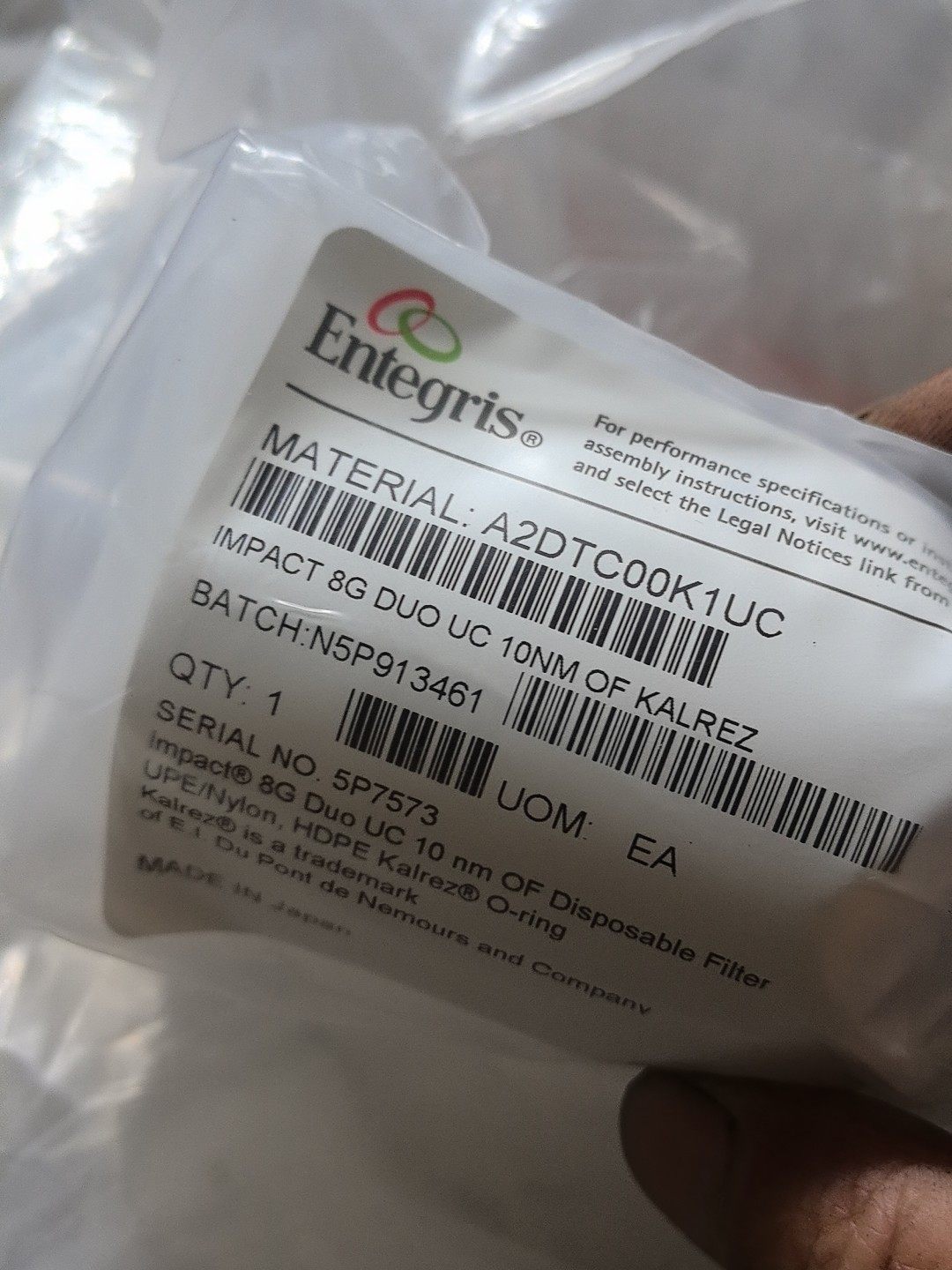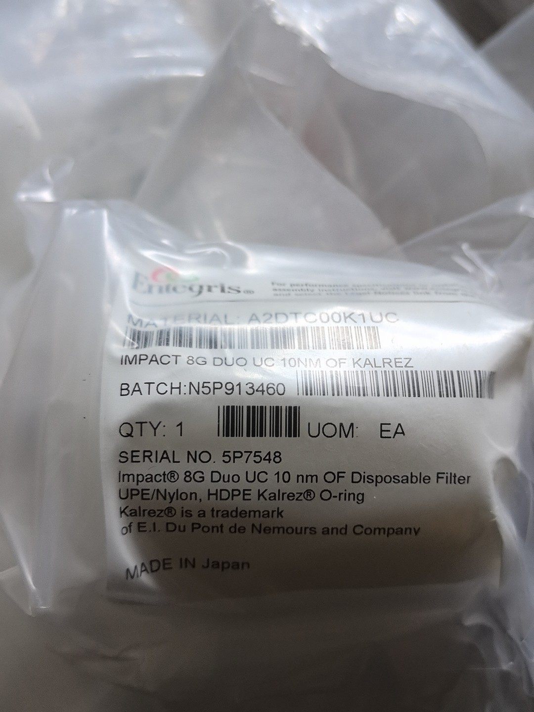 Entegris A2DTC00K1UC IMPACT 8G DUO UC 10nm KALREZ一次性过滤器产品说明