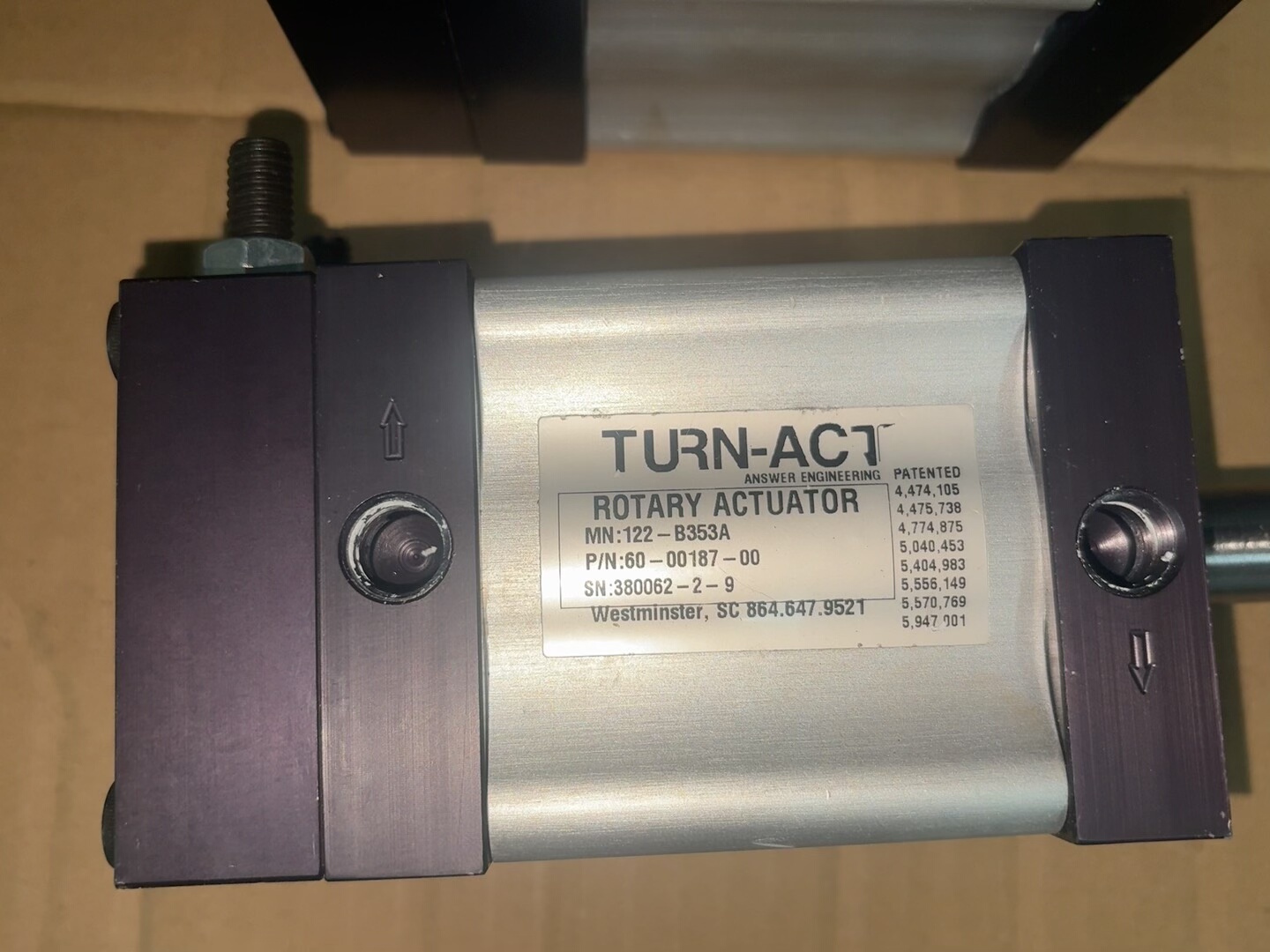 本产品为TURN-ACT品牌旗下的ROTARY ACTUATOR(旋转执行器),型号122-B353A,零件号800-00187-00,属于气动液压系统中的执行元件,具体分类为旋转气缸。其设计用于将气压能转化为旋转机械能,实现特定角度的旋转运动,广泛应用于工业自动化生产线上的物料搬运、工件定位、设备翻转等场景。